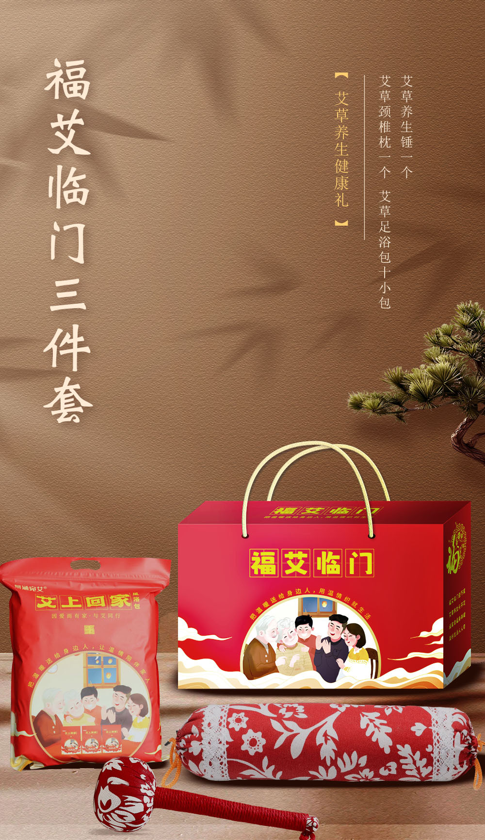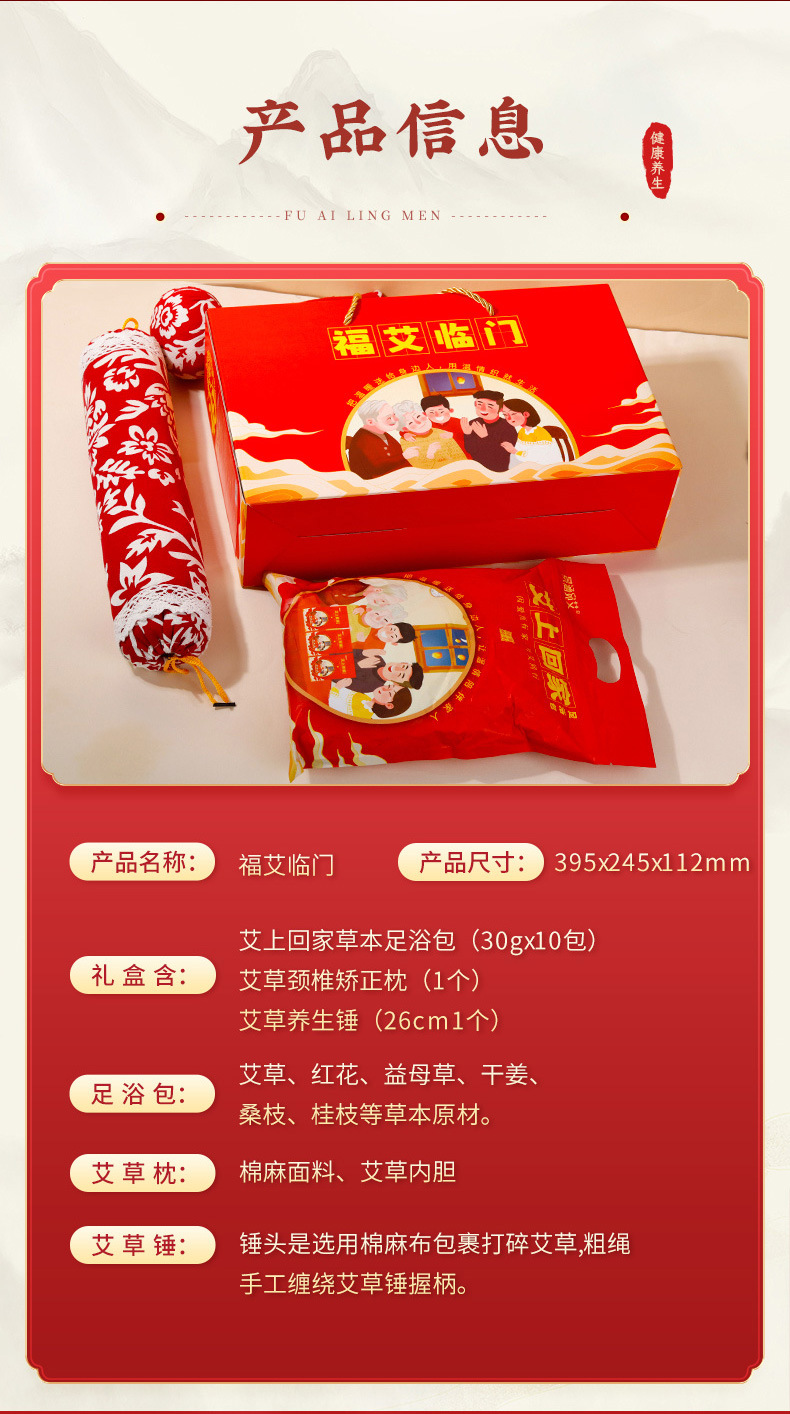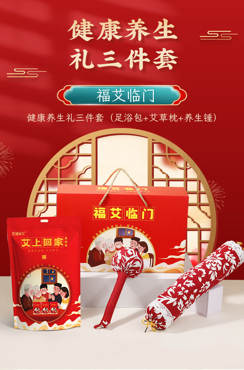 「三件套!礼盒装」开门红礼品艾草枕头礼盒装 手养生会销礼品年货伴手礼商务礼品