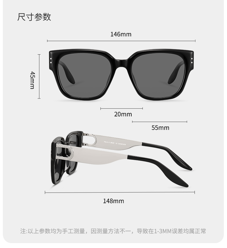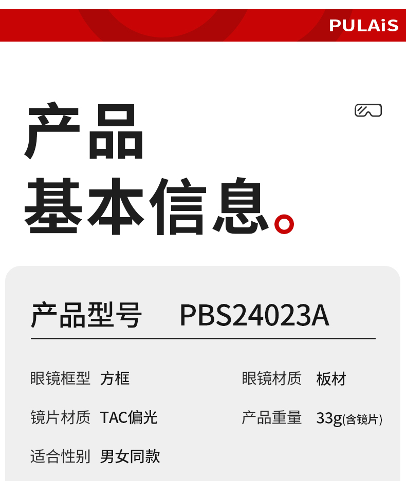 普莱斯新款太阳镜 PBS24023A 气场全开时尚大框 板材镜框质感细腻 男女同款 三色可选