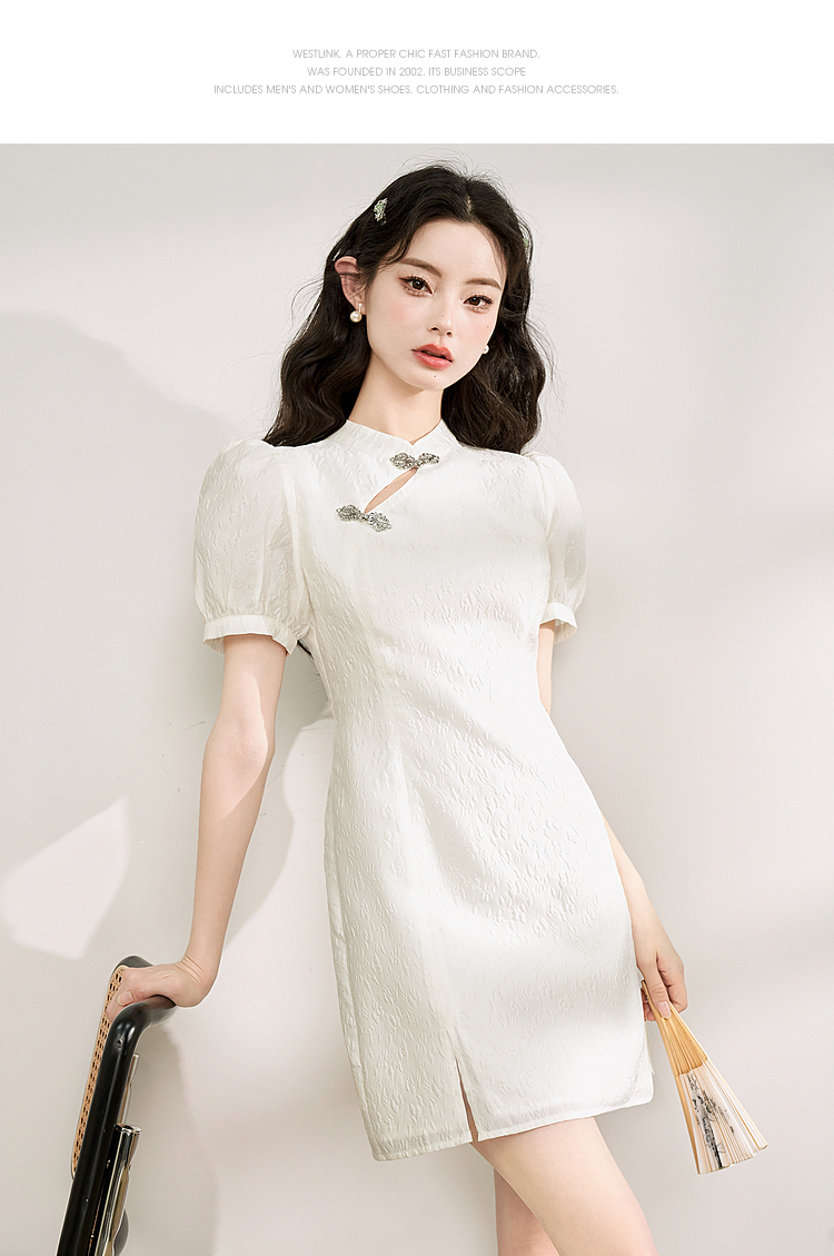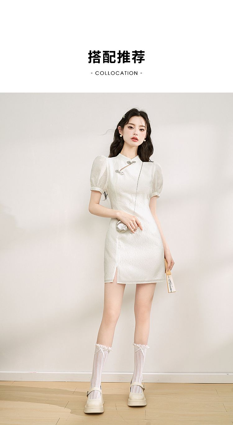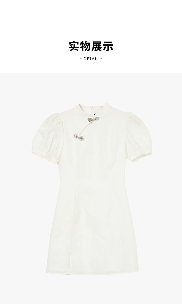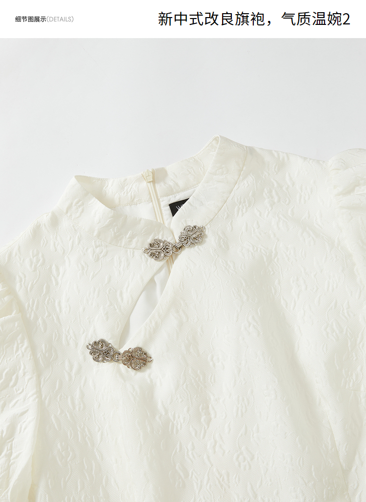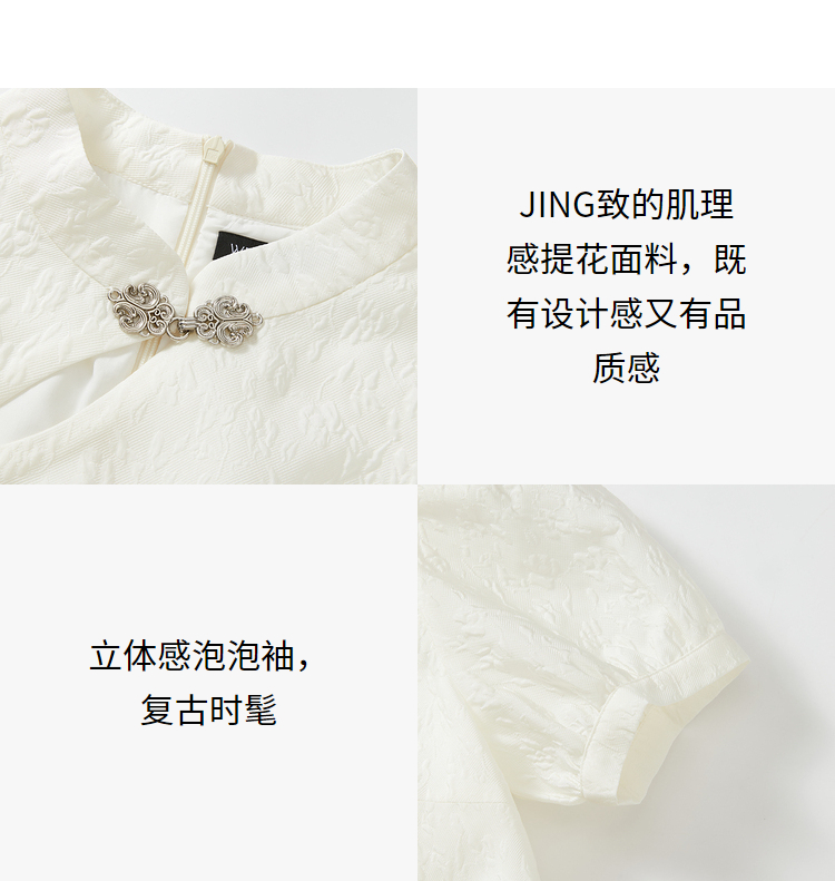 西遇新中式国风旗袍裙女2023夏新款泡泡袖开衩设计肌理感提花优雅V0031614