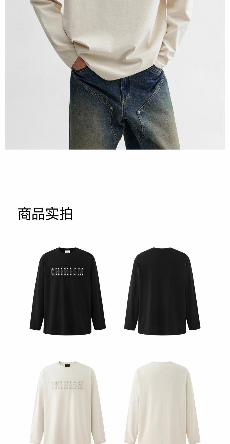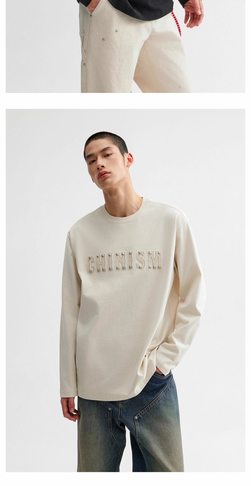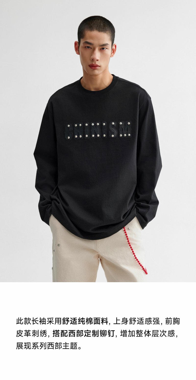 【商场同款】CHINISM赤尘 皮革刺绣纯棉长袖T恤男2025春季新款