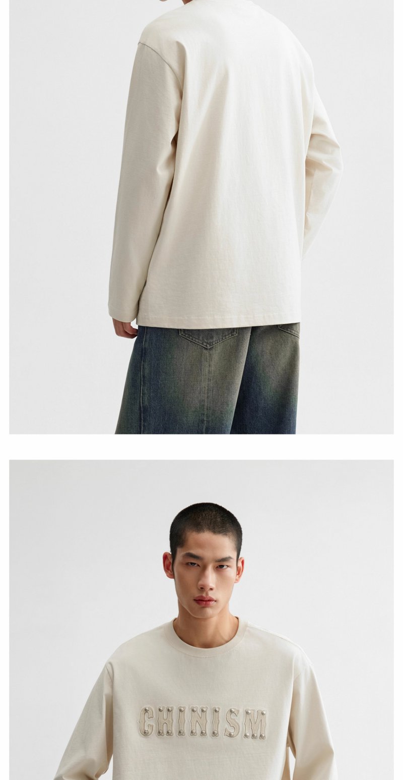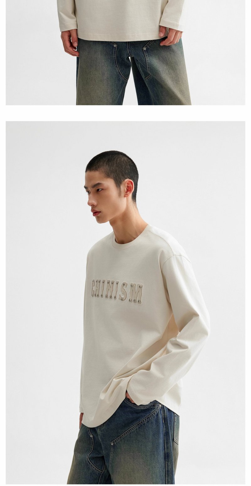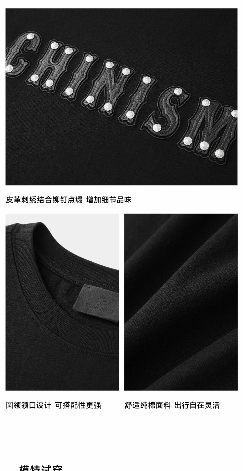 【商场同款】CHINISM赤尘 皮革刺绣纯棉长袖T恤男2025春季新款