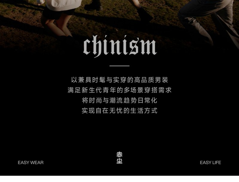 - 中国潮流快时尚男装品牌 CHINISM ,始创于2012年,正式成立于2014年。灵感源自每一位青年的穿衣需求。CHINISM - EASY WEAR