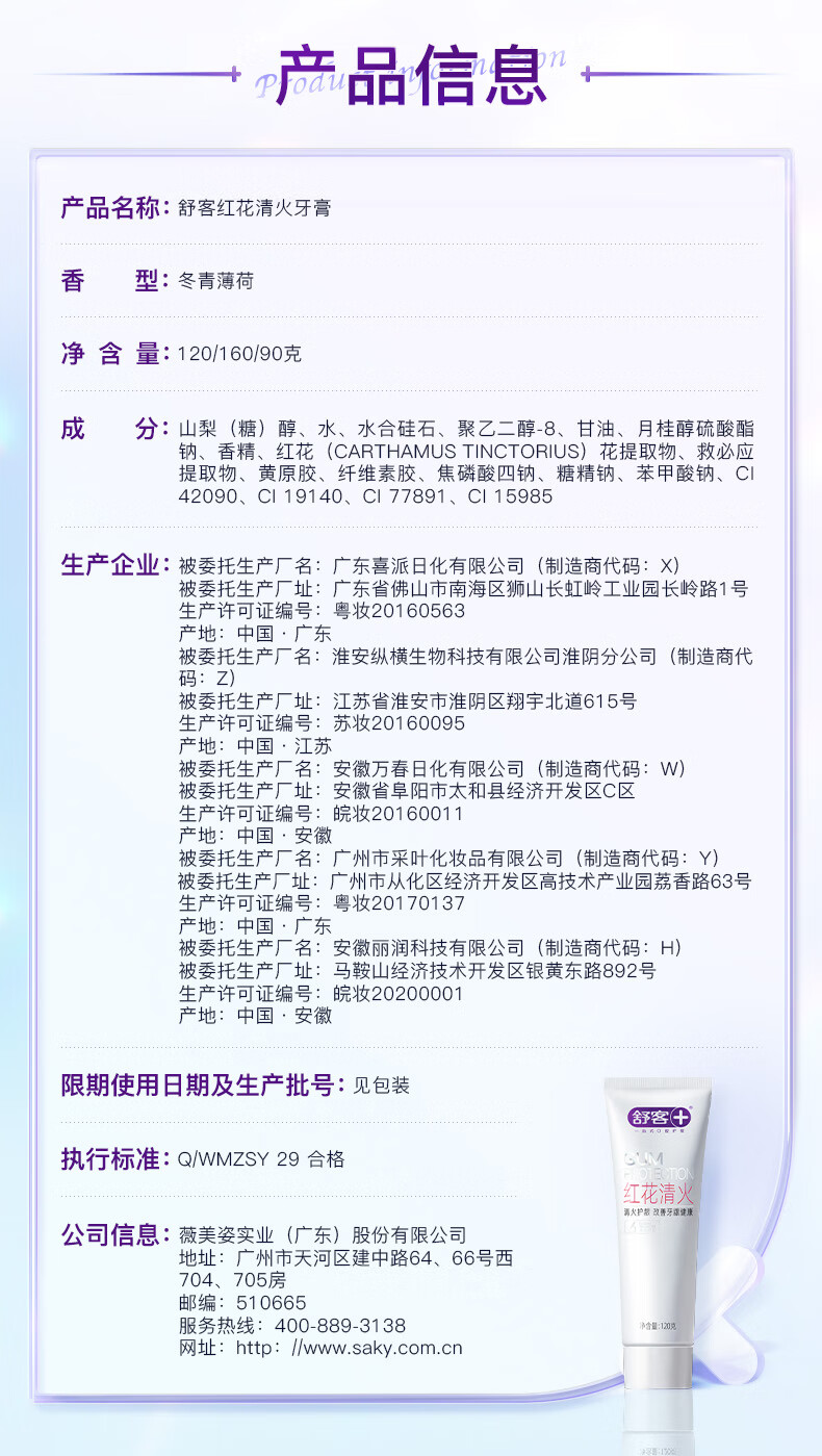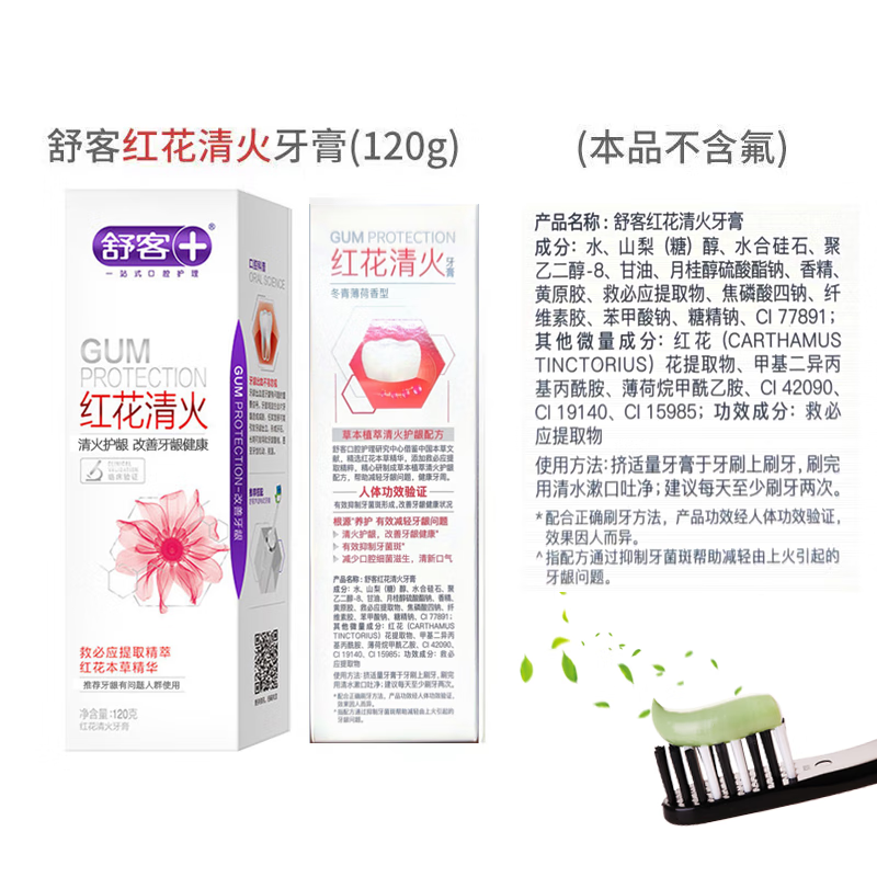 【自营】舒客红花清火牙膏120g*2支