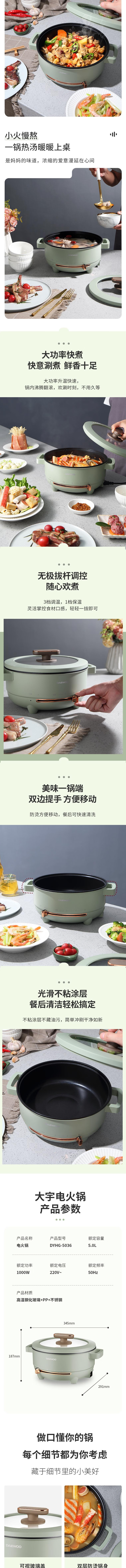 大宇电火锅家用多功能5L(DAEWOO) 涮煮炒焖多用途电炒锅DYHG-5036绿色