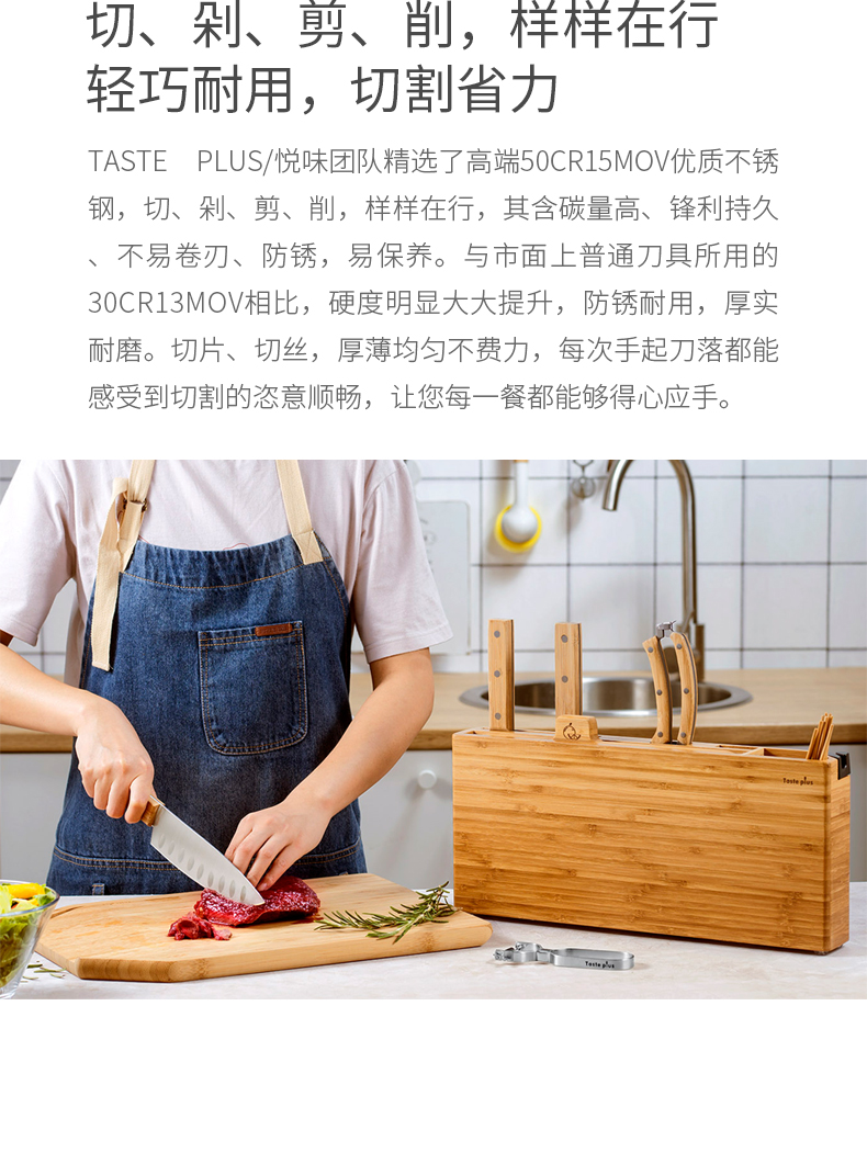 悦味不锈钢刀具套装 厨房全套菜刀砧板组合 多功能家用切片水果刀