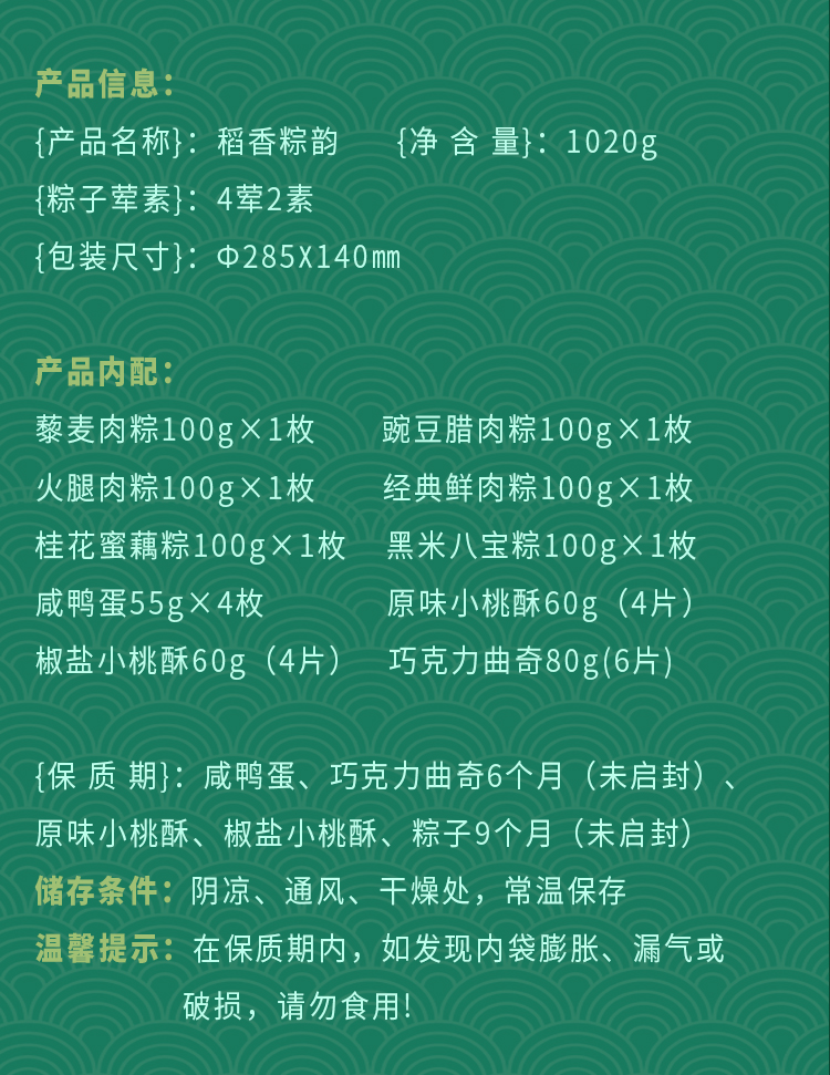 稻香村 稻香粽韵礼盒(6粽4蛋+点心)- 1020g【端午】SKT