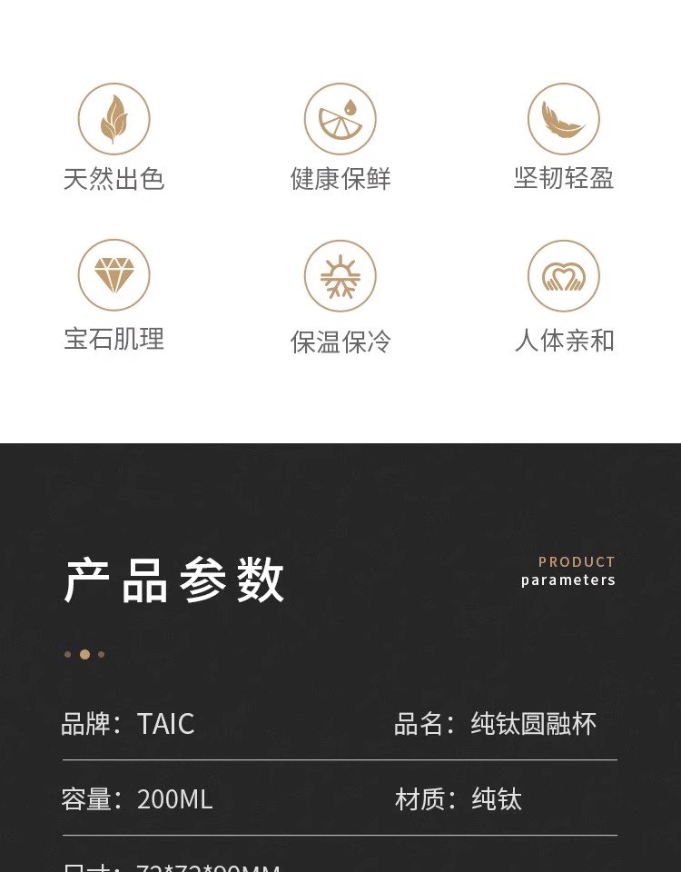 TAIC太可纯钛咖啡杯金属双层隔热啤酒隔温英国早餐杯圆融杯200ml