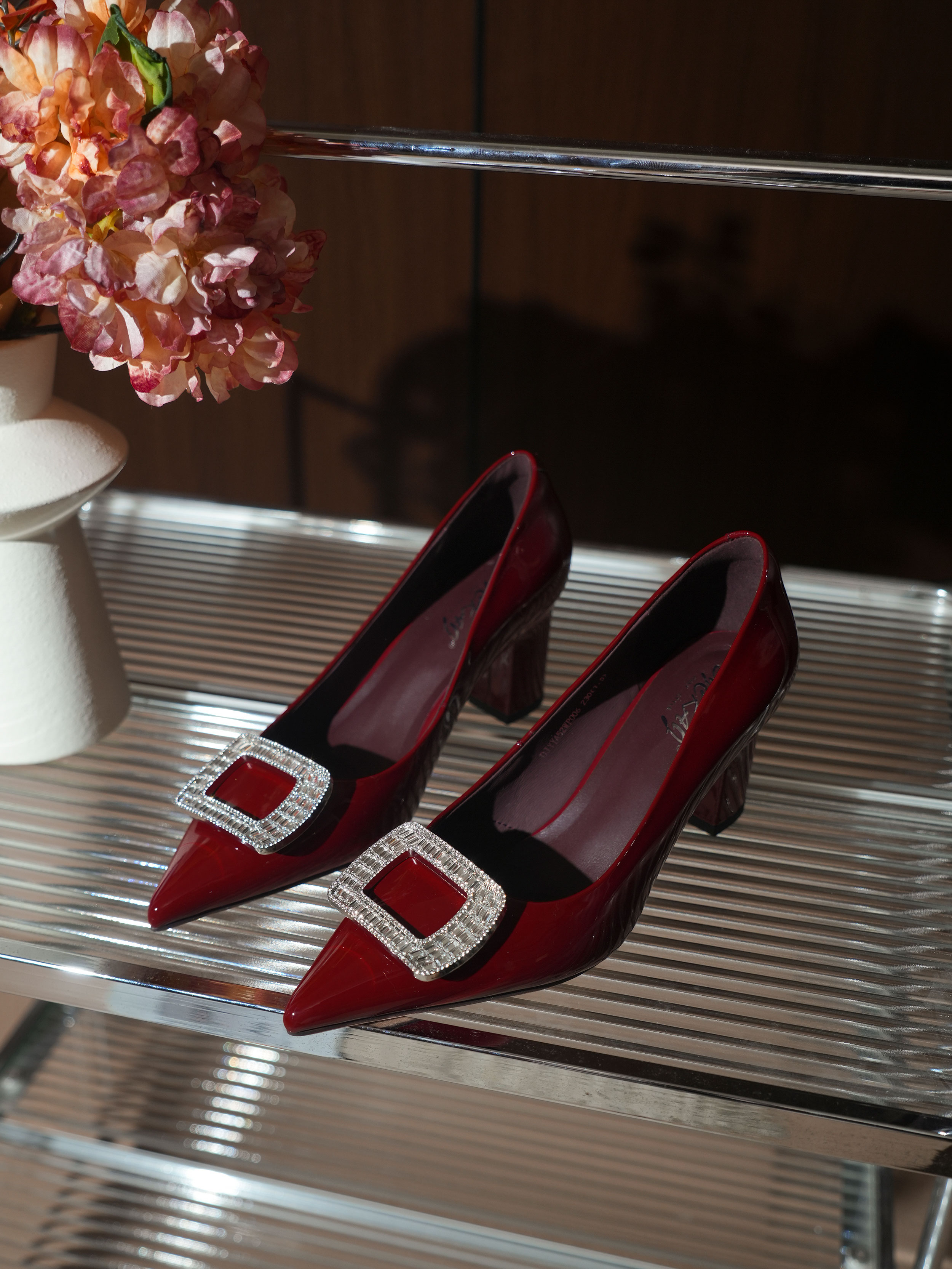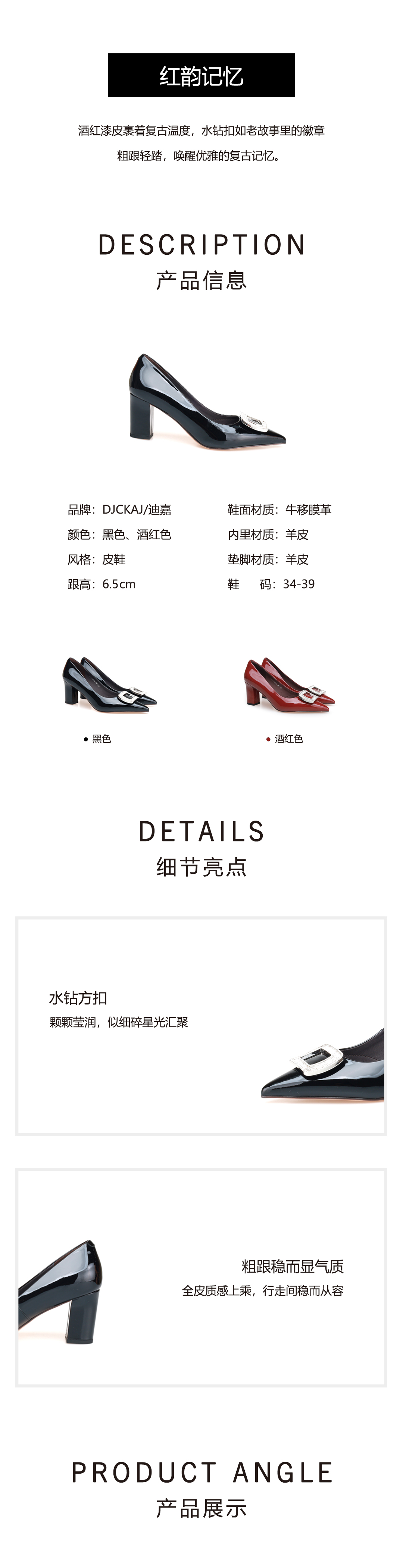 豪麟名鞋迪嘉女鞋皮鞋牛移膜革DJYYA52WP006酒红色