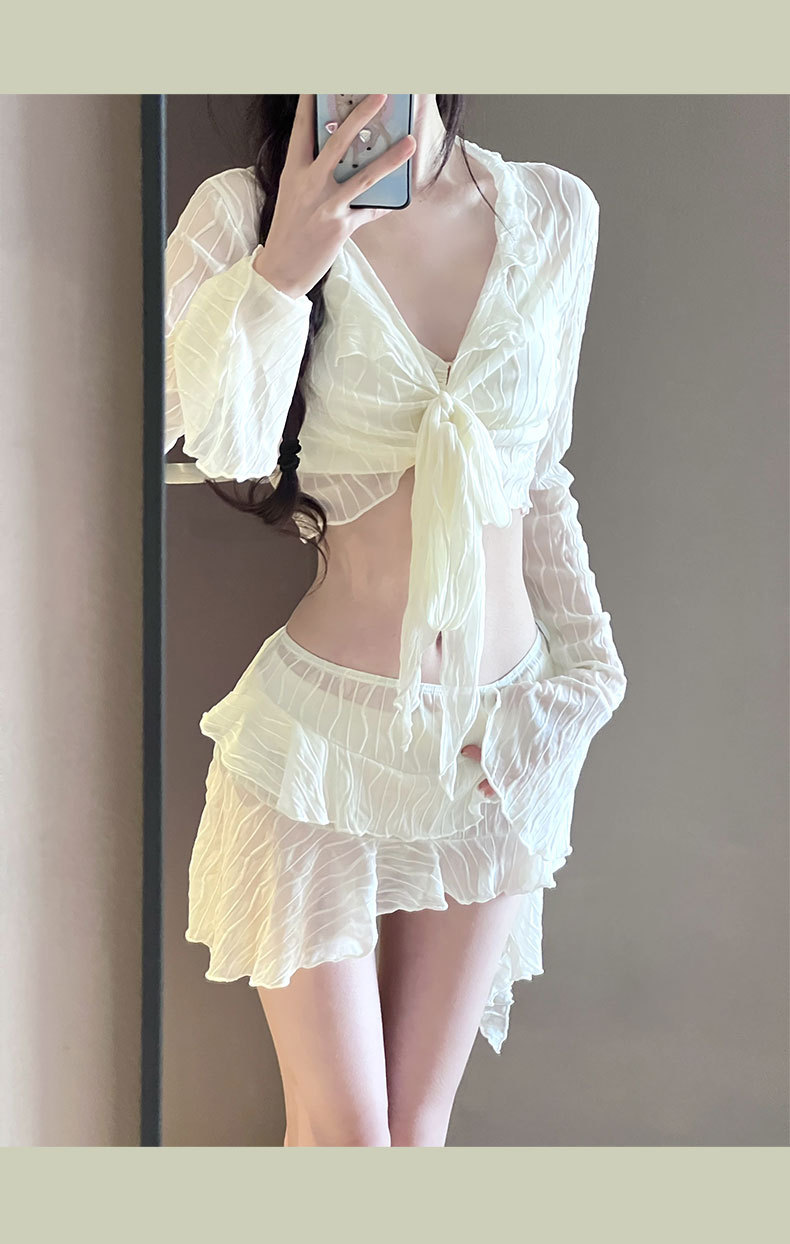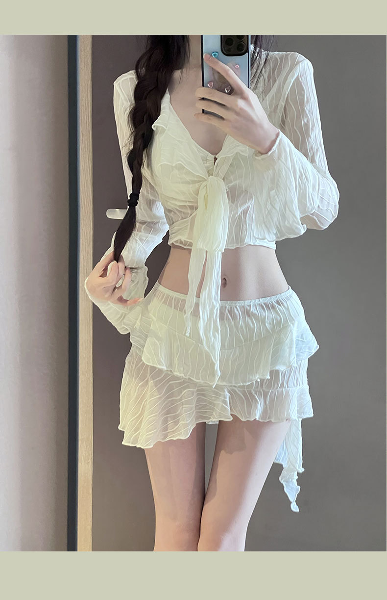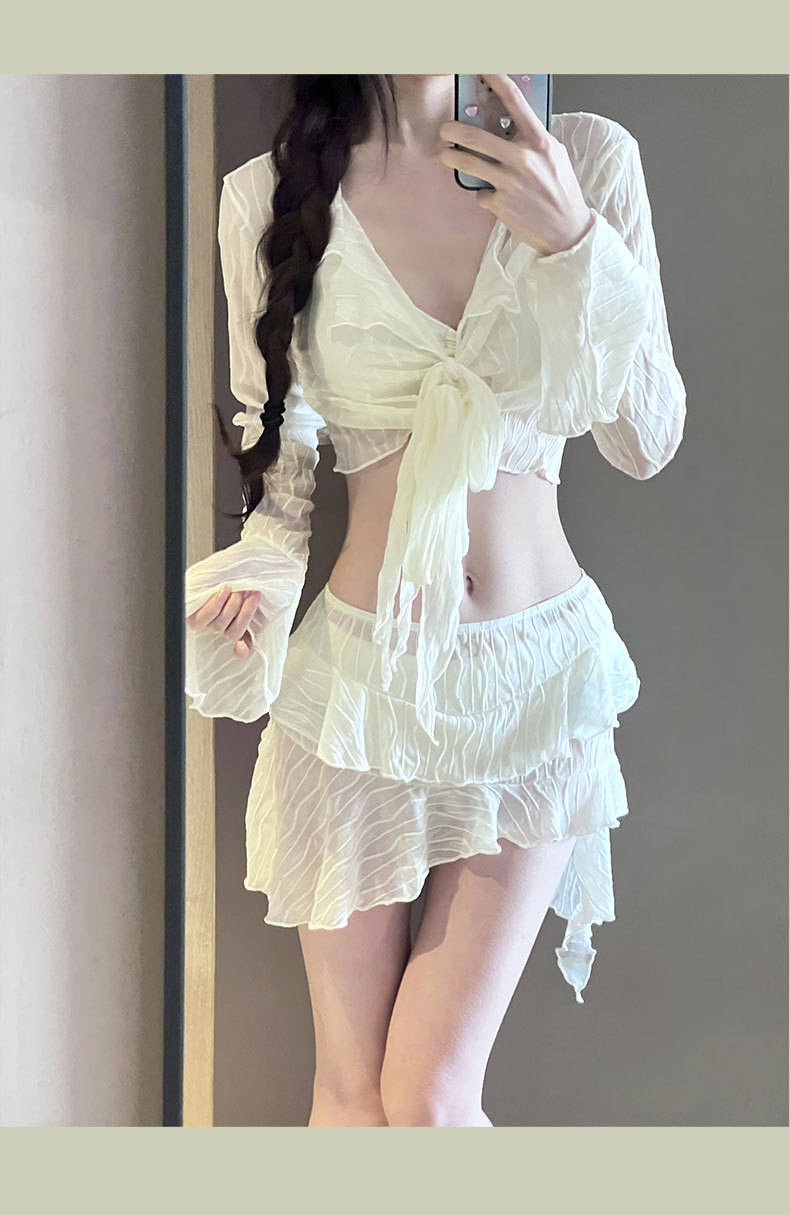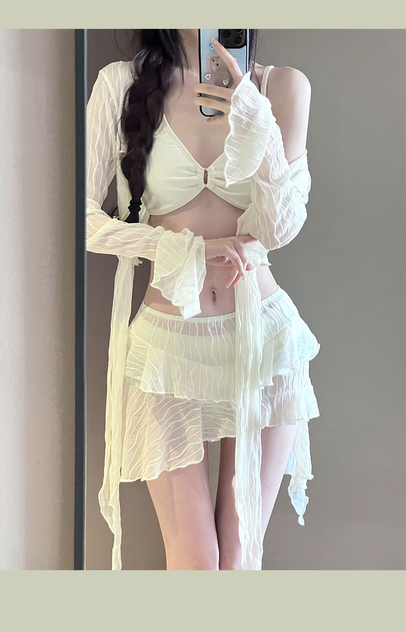 高级感泳衣女比基尼2025新款显瘦保守遮肚四件套性感分体度假温泉