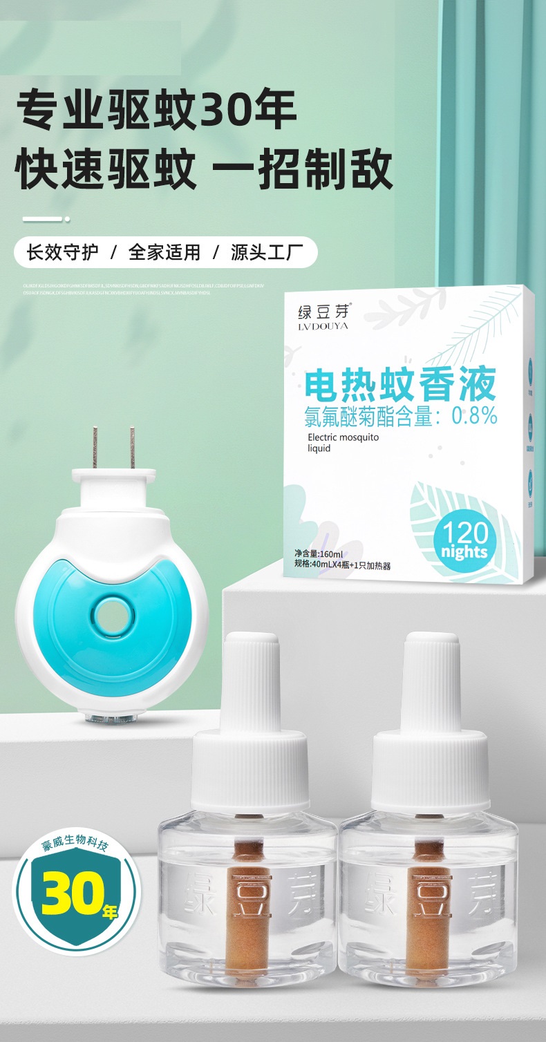 长效驱蚊 健康驱蚊 整晚安睡绿豆芽电热蚊香液宝宝婴儿孕妇电蚊香液防蚊水家用套装