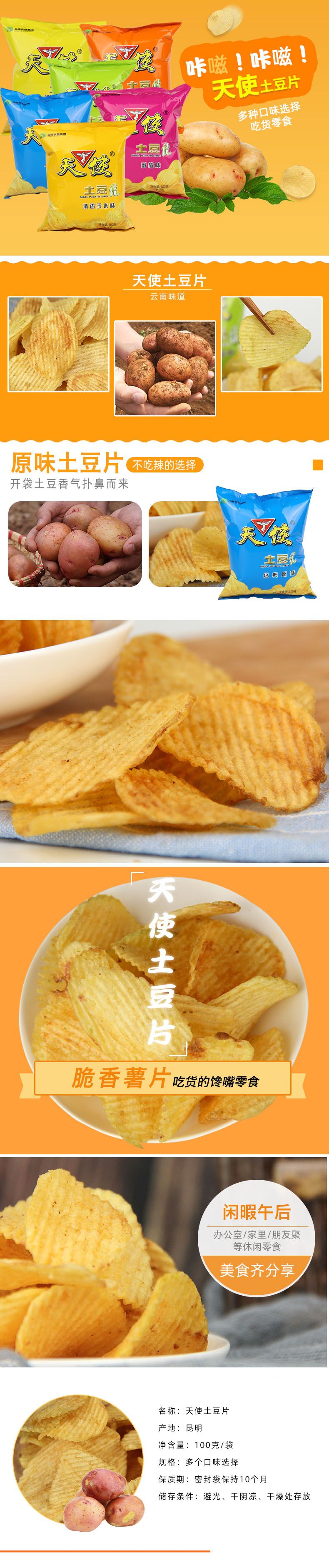 天使牌土豆片(经典原味)100g/袋