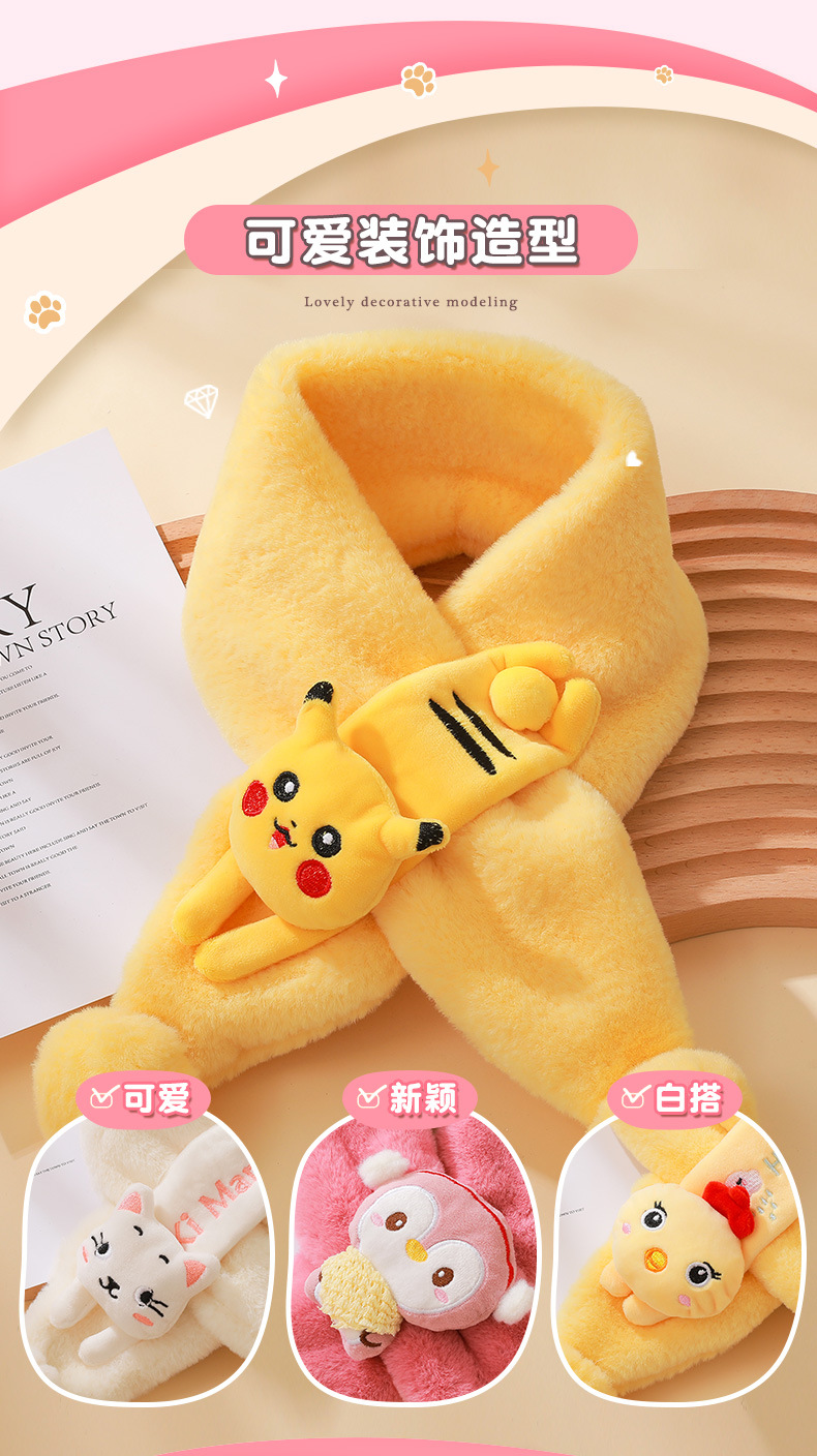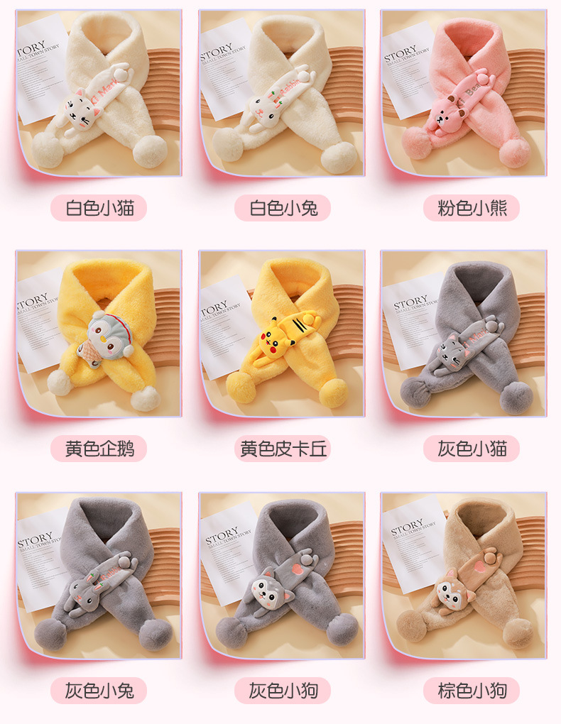 秋冬【卡通毛绒圣诞儿童围巾】男童女童毛绒保暖围巾 幼儿园卡通围脖