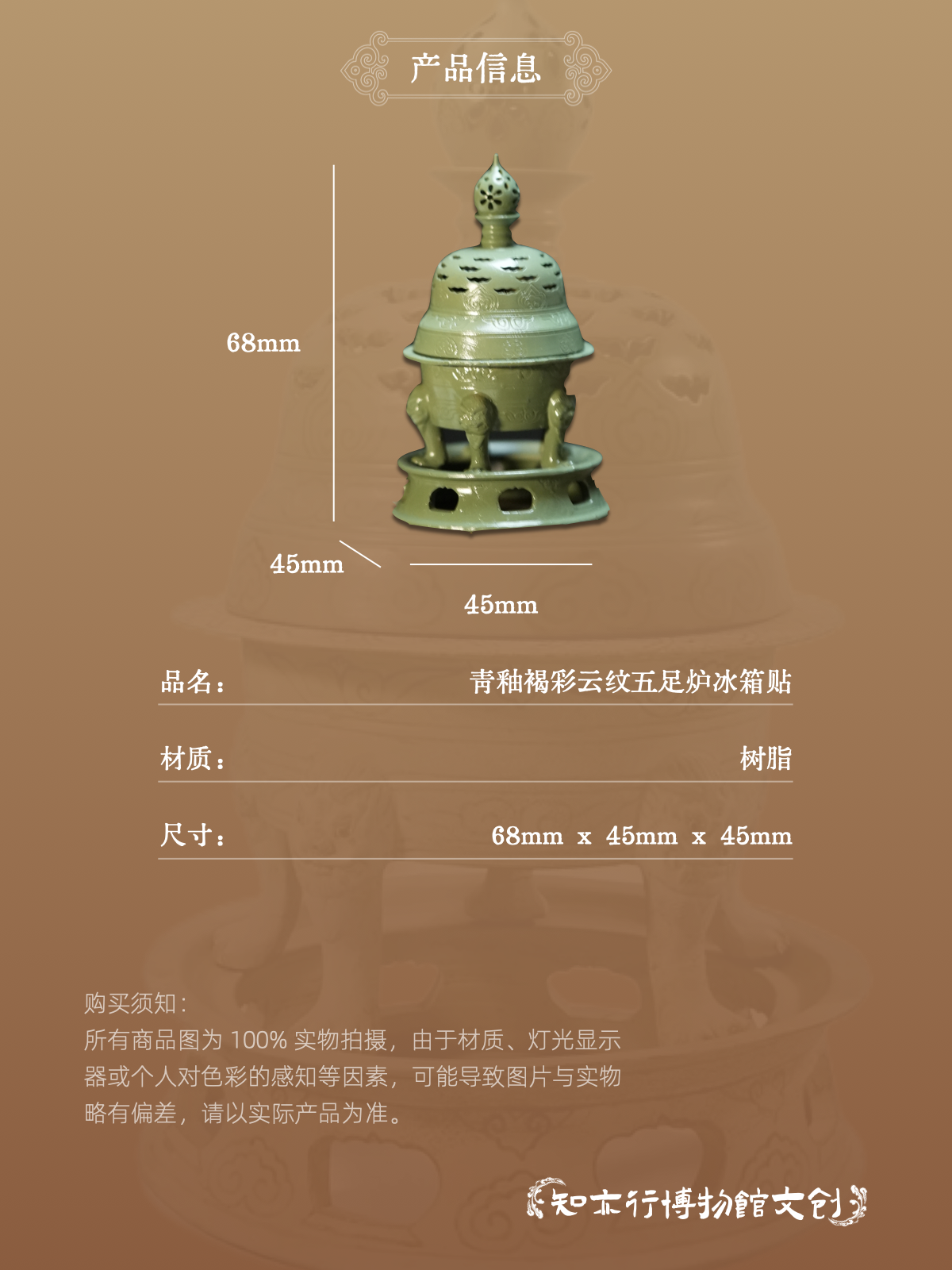 青釉褐彩祥云五足炉冰箱贴小摆件杭州临安博物馆藏文物复刻文创
