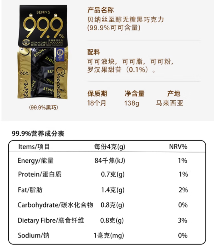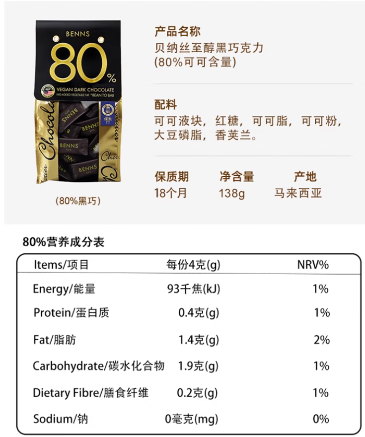 贝纳丝巴旦木夹心70%138g