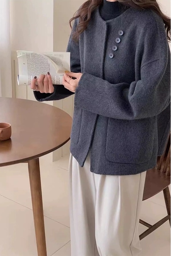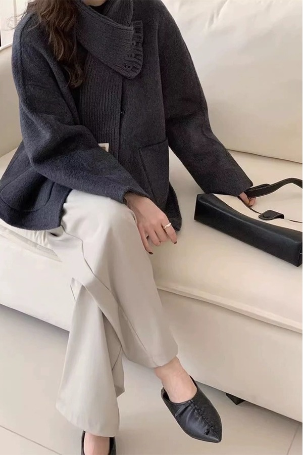 amadella 深灰色短款羊绒大衣针织围巾套装 19271