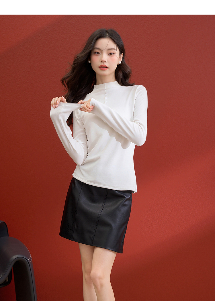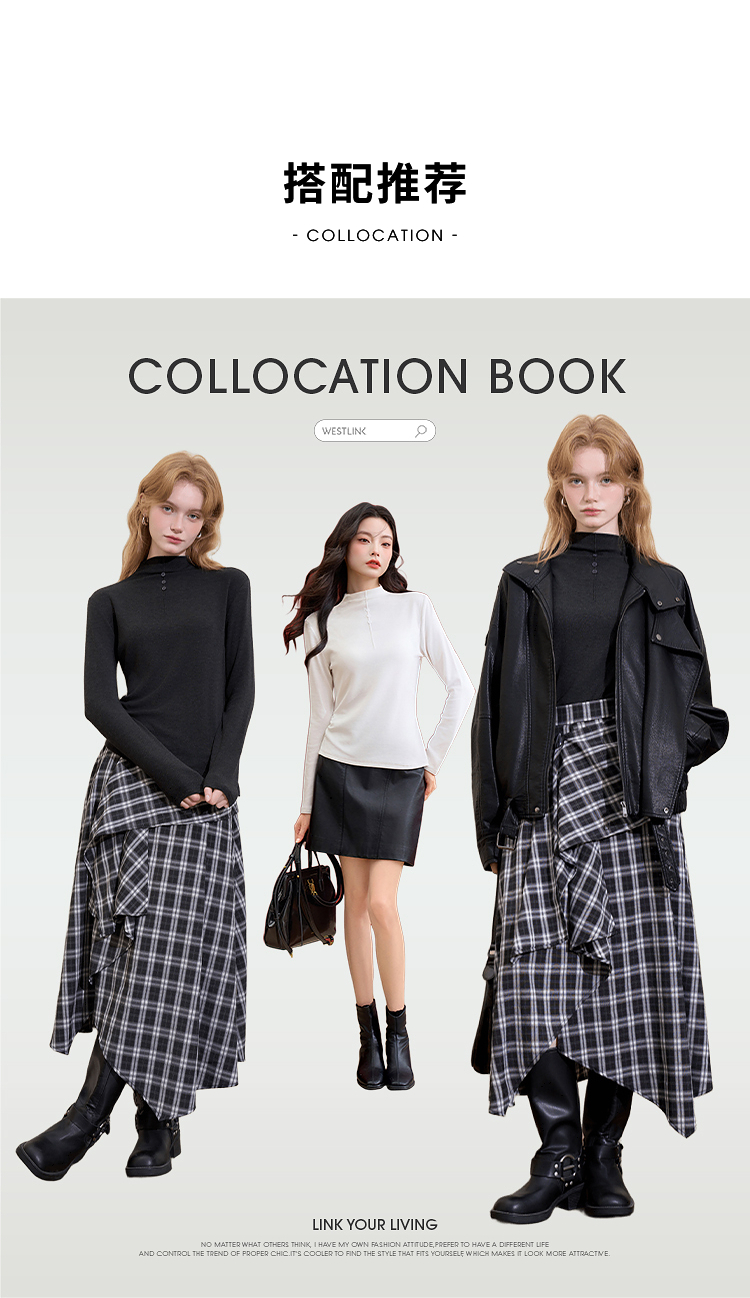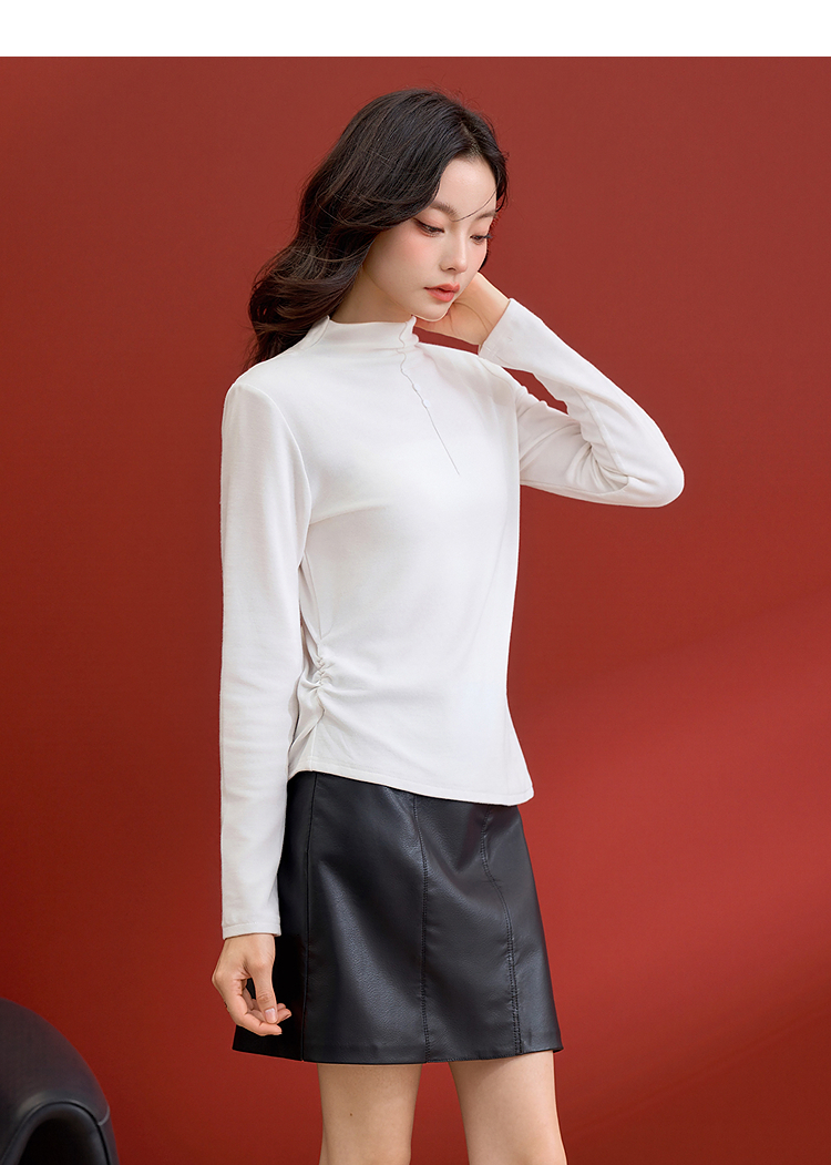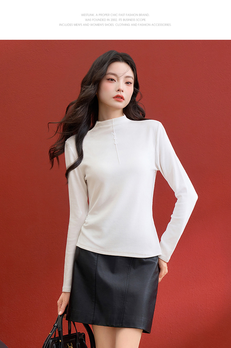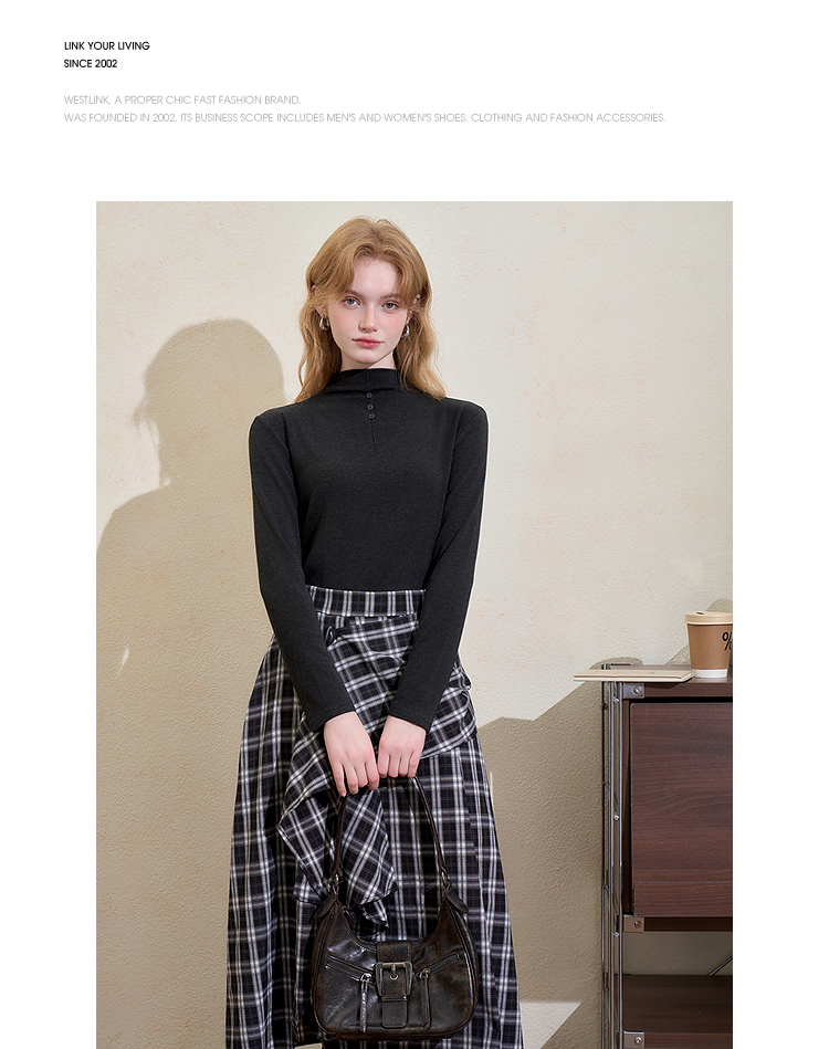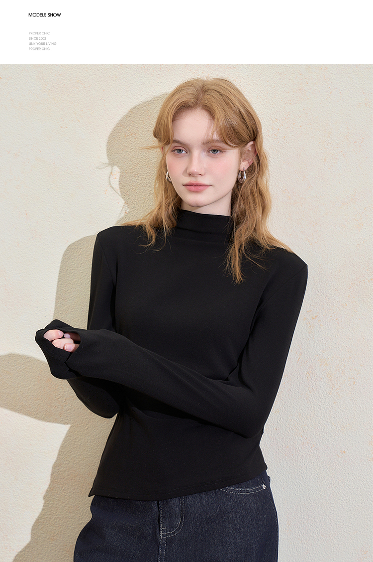 西遇半高领纽扣针织打底衫女冬季新款抽绳收腰显瘦长袖T恤H0055299