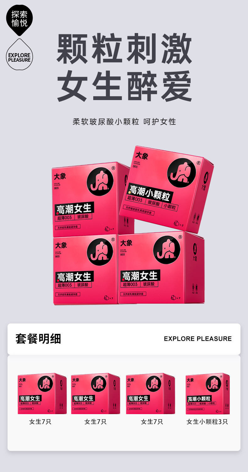 【双旦狂欢·钜惠来袭】 大象高潮女生系列 玻尿酸润滑 小颗粒款 超薄003