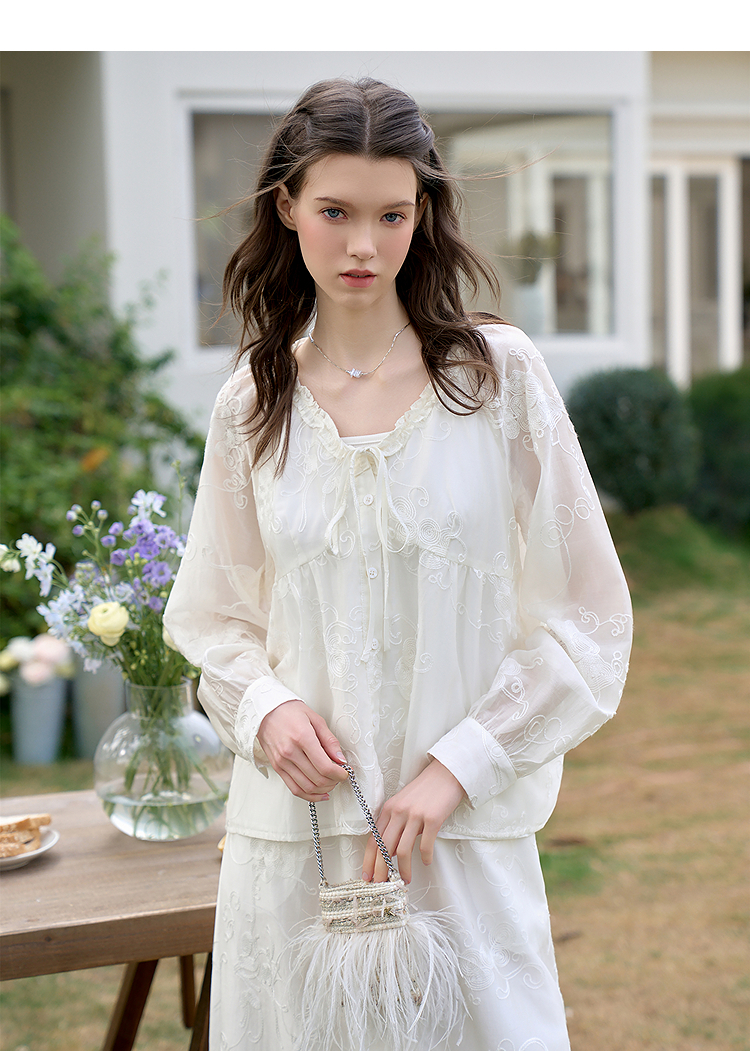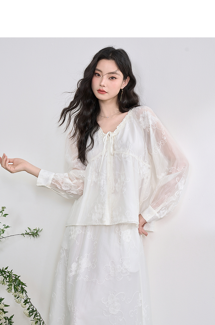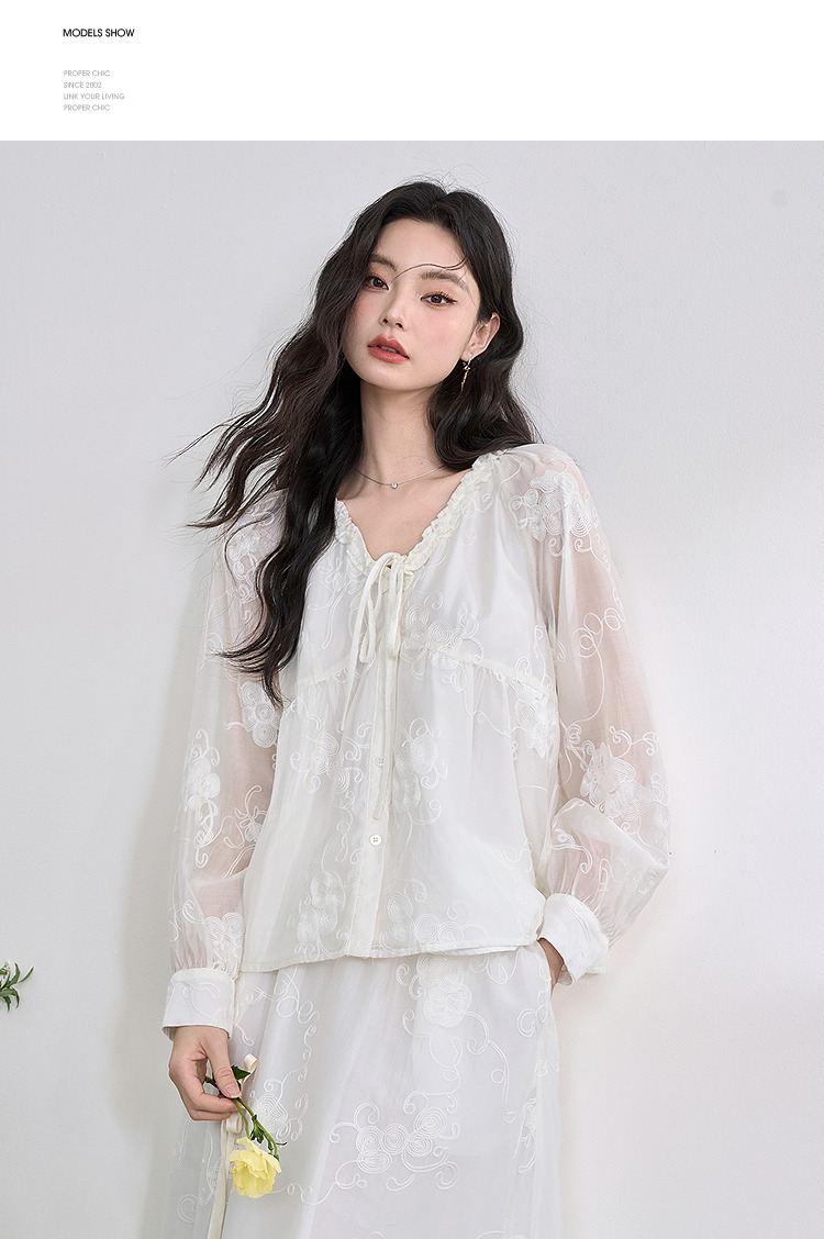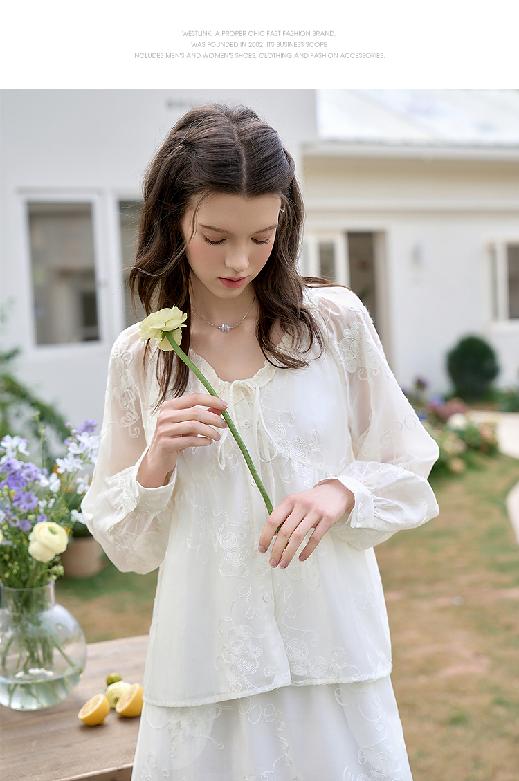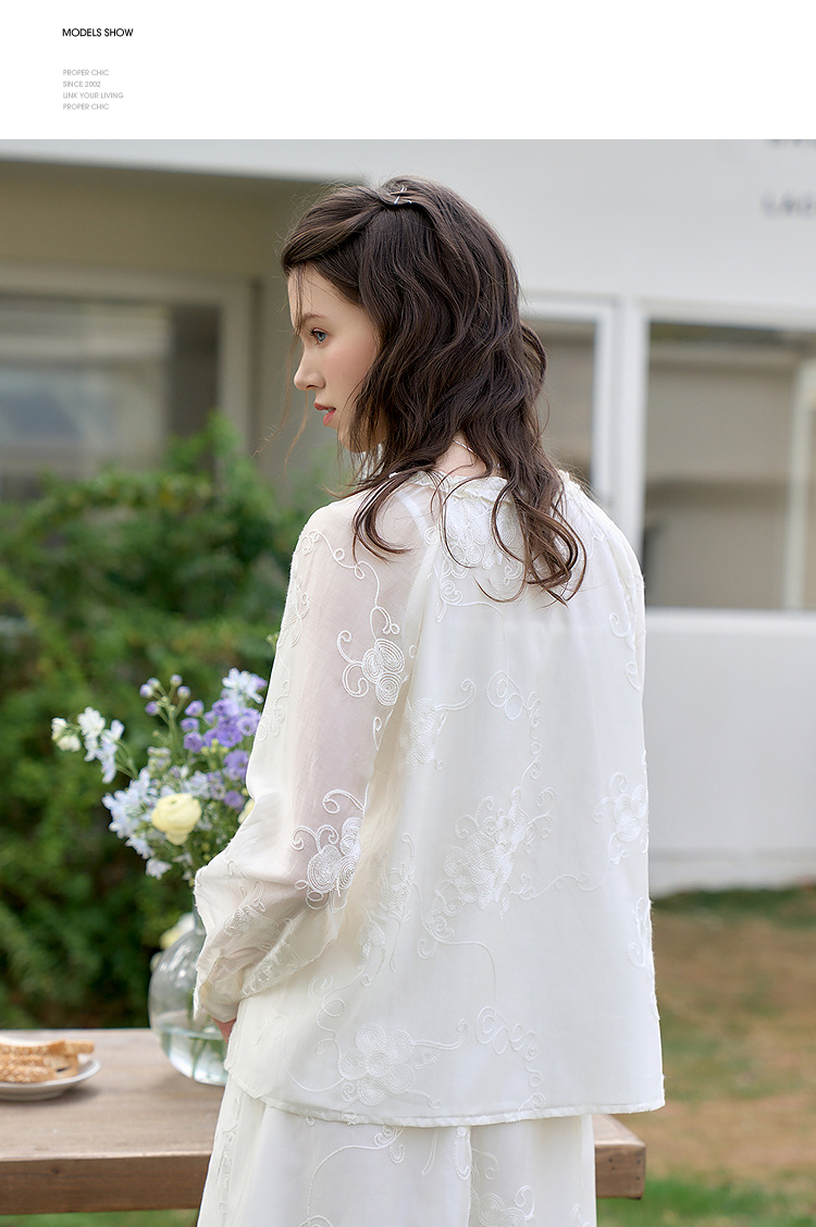 复古文艺感天丝重工肌理感绣花衬衫女衬娃娃款衣V0550243