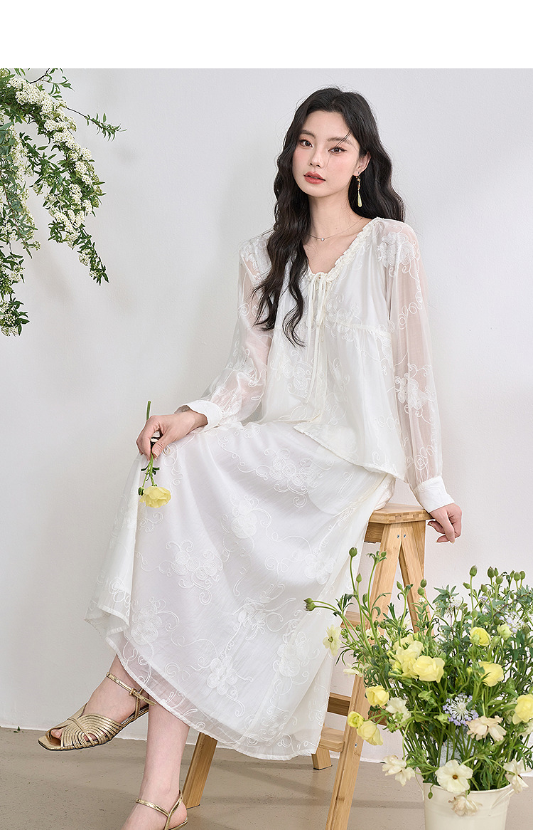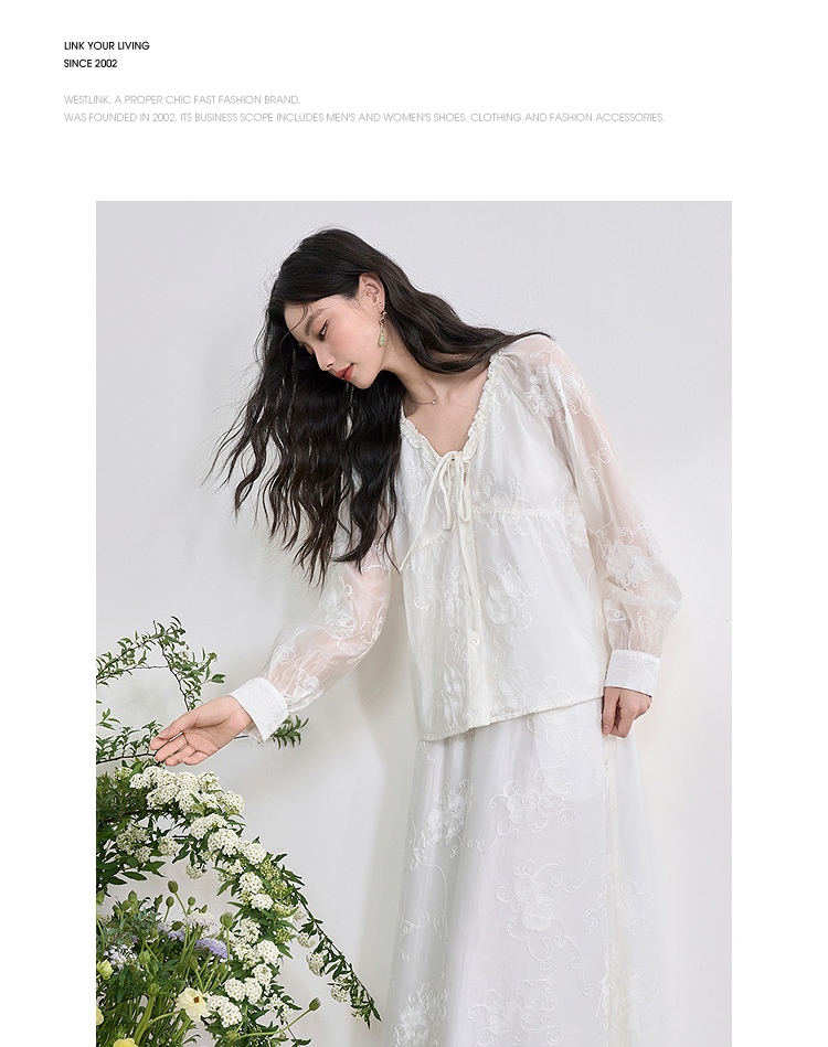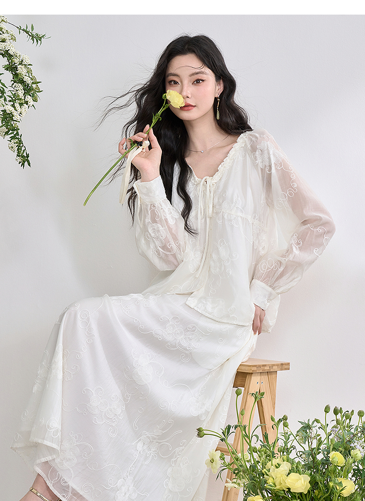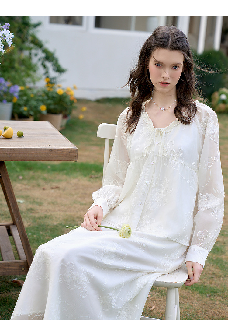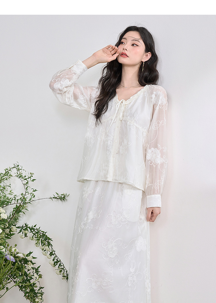复古文艺感天丝重工肌理感绣花衬衫女衬娃娃款衣V0550243