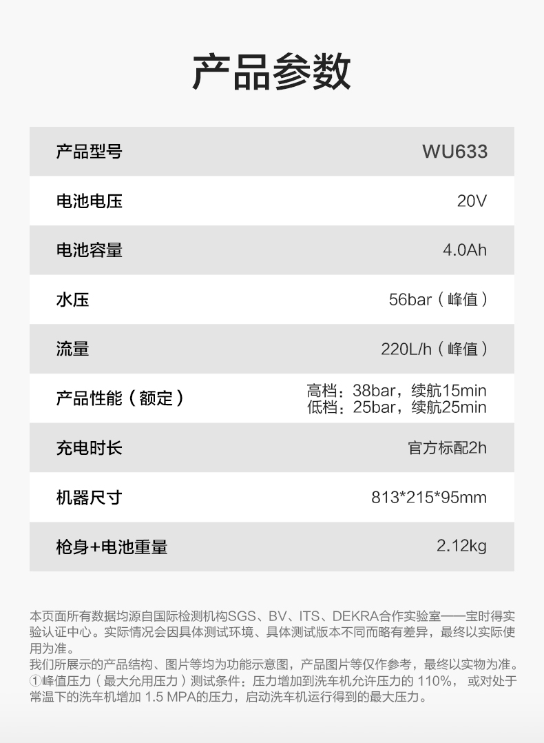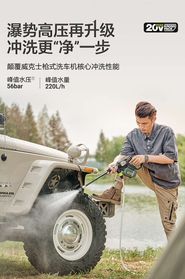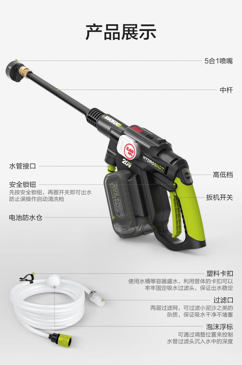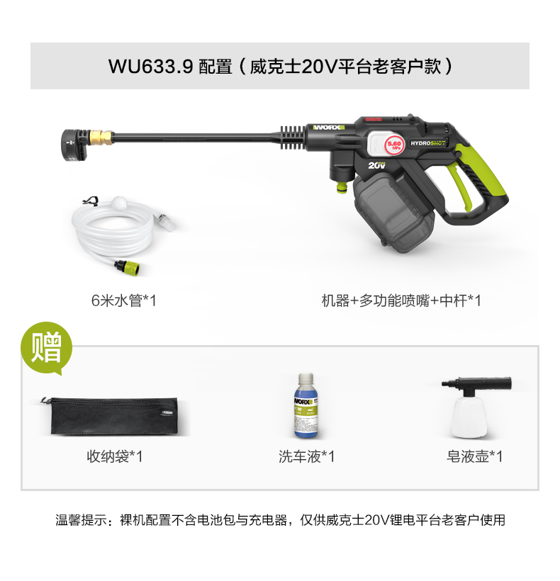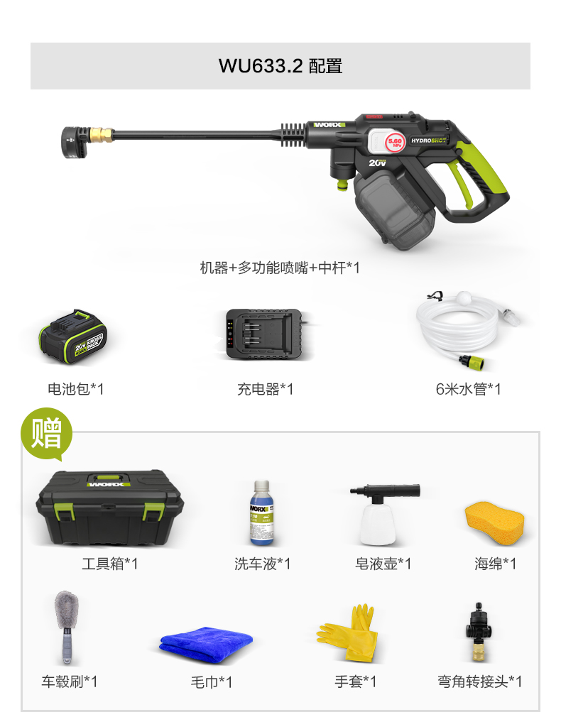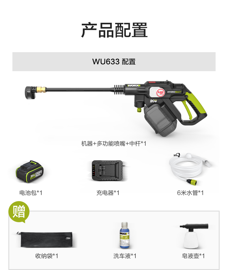 威克士高压无线洗车机WU633家用锂电清洗机充电式便携式洗车水枪