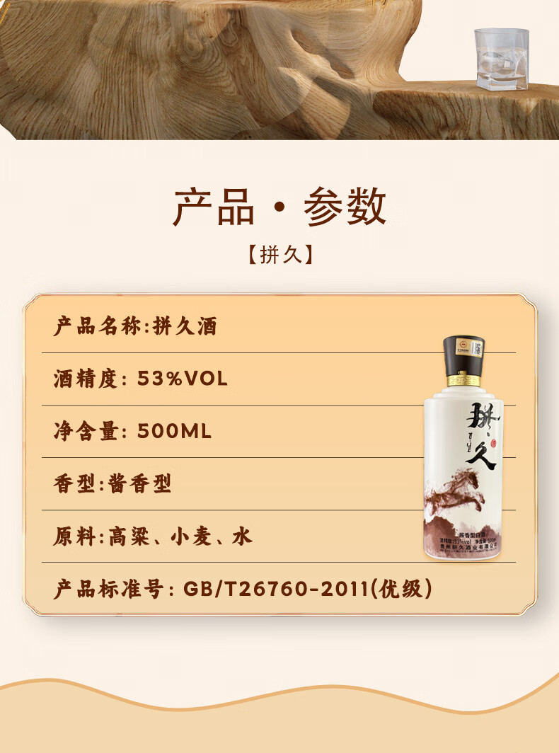 拼久53度酱香型白酒 贵州茅台镇 纯粮酿造 送礼自饮 53度 500mL 53度 500mL 1瓶