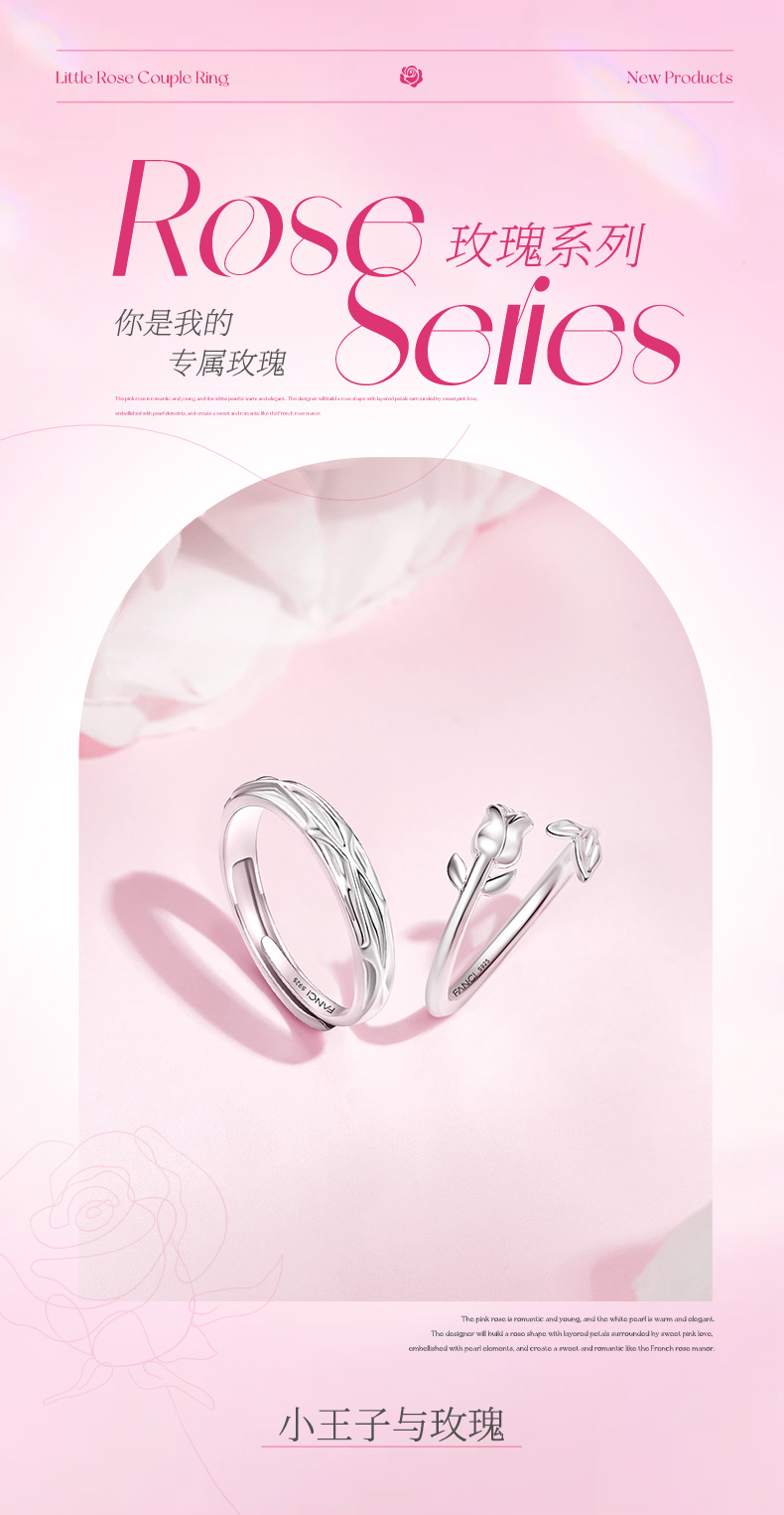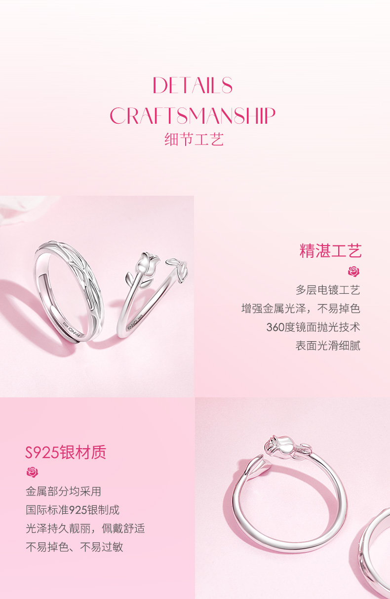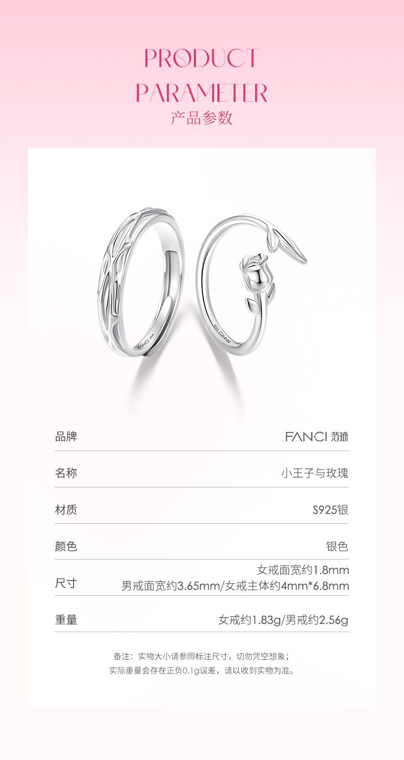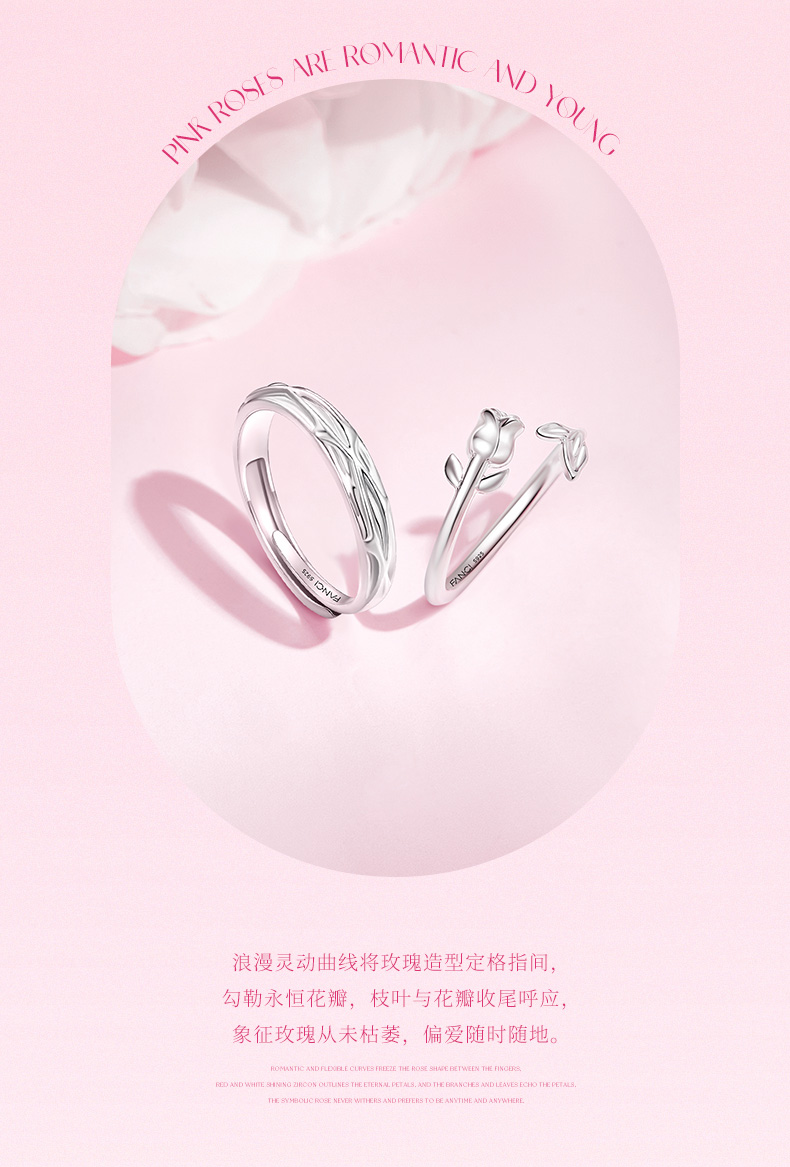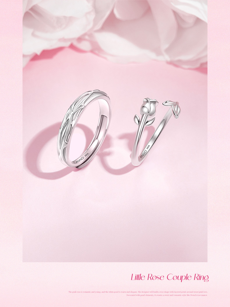 【玫瑰恋语对戒】Fanci范琦银饰情侣对戒 下单赠精美礼盒+顺丰包邮+运费险