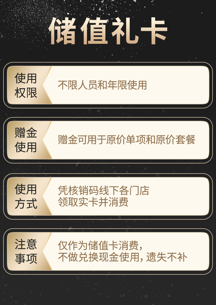 【储值一体卡满10000赠5000 】不限人员和年限使用,赠金可用于原价单项和原价套餐,凭核销码线下各门店领取实卡并消费