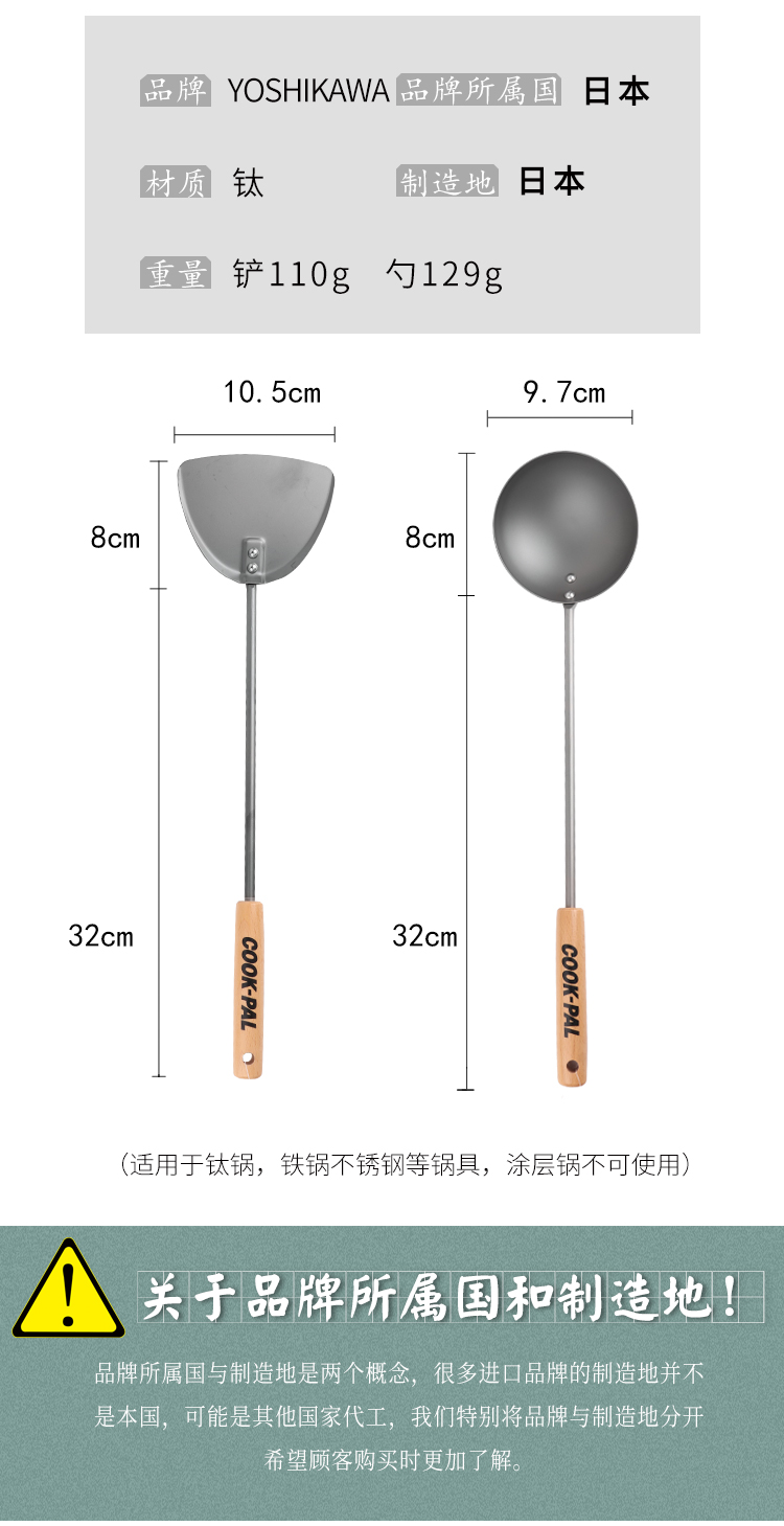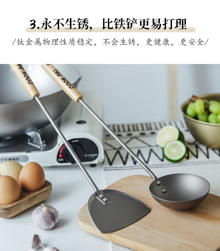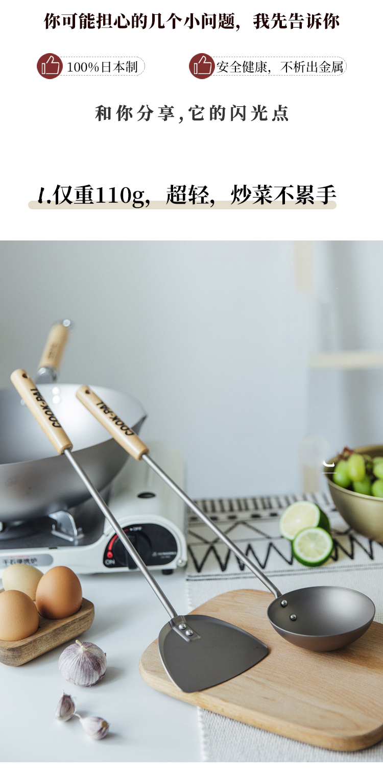 日本进口吉川超轻钛铲钛勺 家用不易生锈炒菜铲锅铲厨具