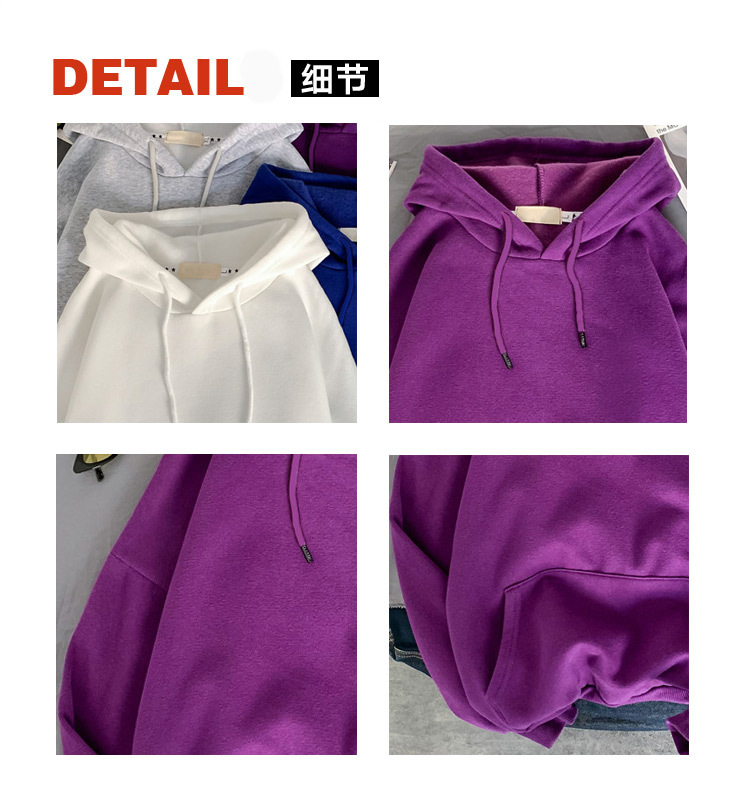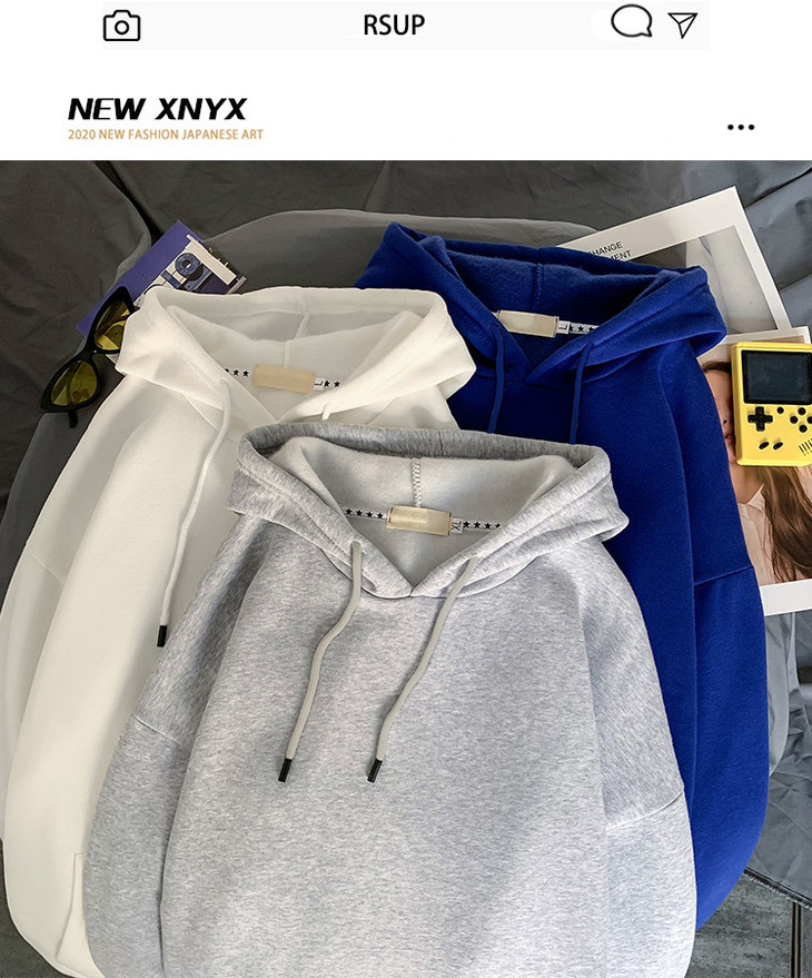秋冬季ins港风连帽纯色加绒卫衣男潮流学生宽松bf套头衫休闲外套