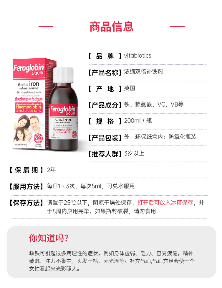 【保税仓】英国 薇塔贝尔vitabiotics 铁锌营养液 200ml/瓶 (有效期至2025年10月)