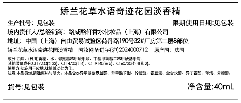 娇兰 花草水语奇迹花园淡香精40ML G062282-F