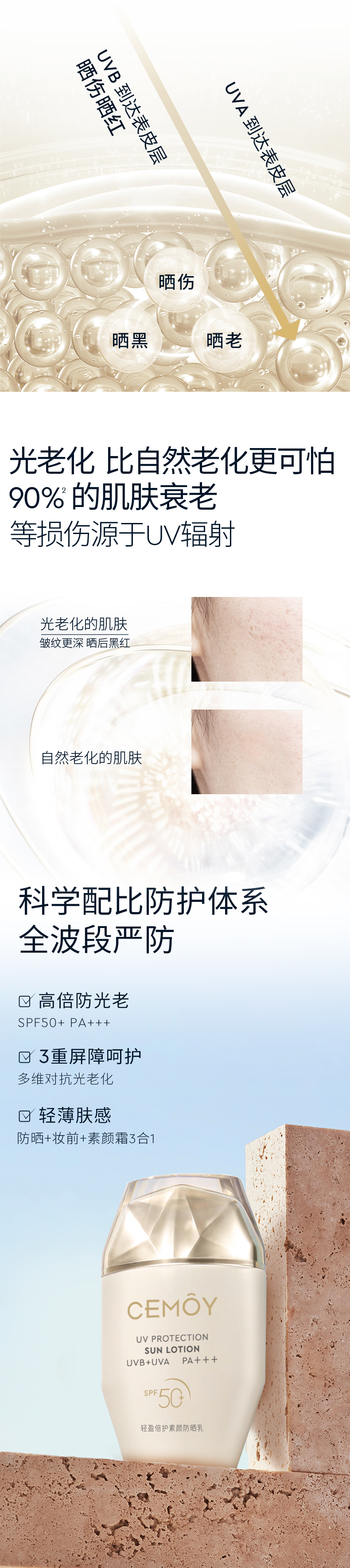 CEMOY轻盈倍护素颜防晒霜50ml送同款防晒17ml*3