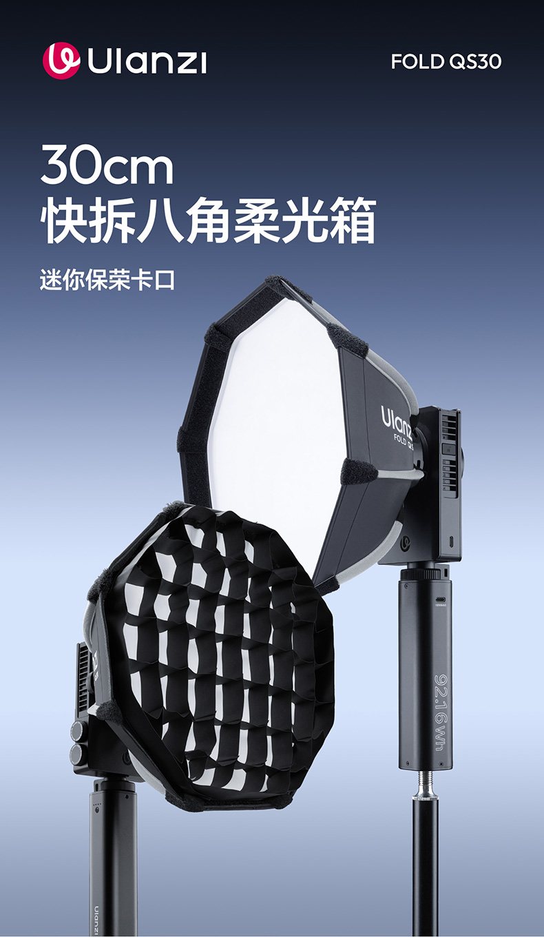 Ulanzi优篮子 FOLD QS80快拆八角柔光箱标准保荣口柔光箱30cm迷你保荣口柔光箱