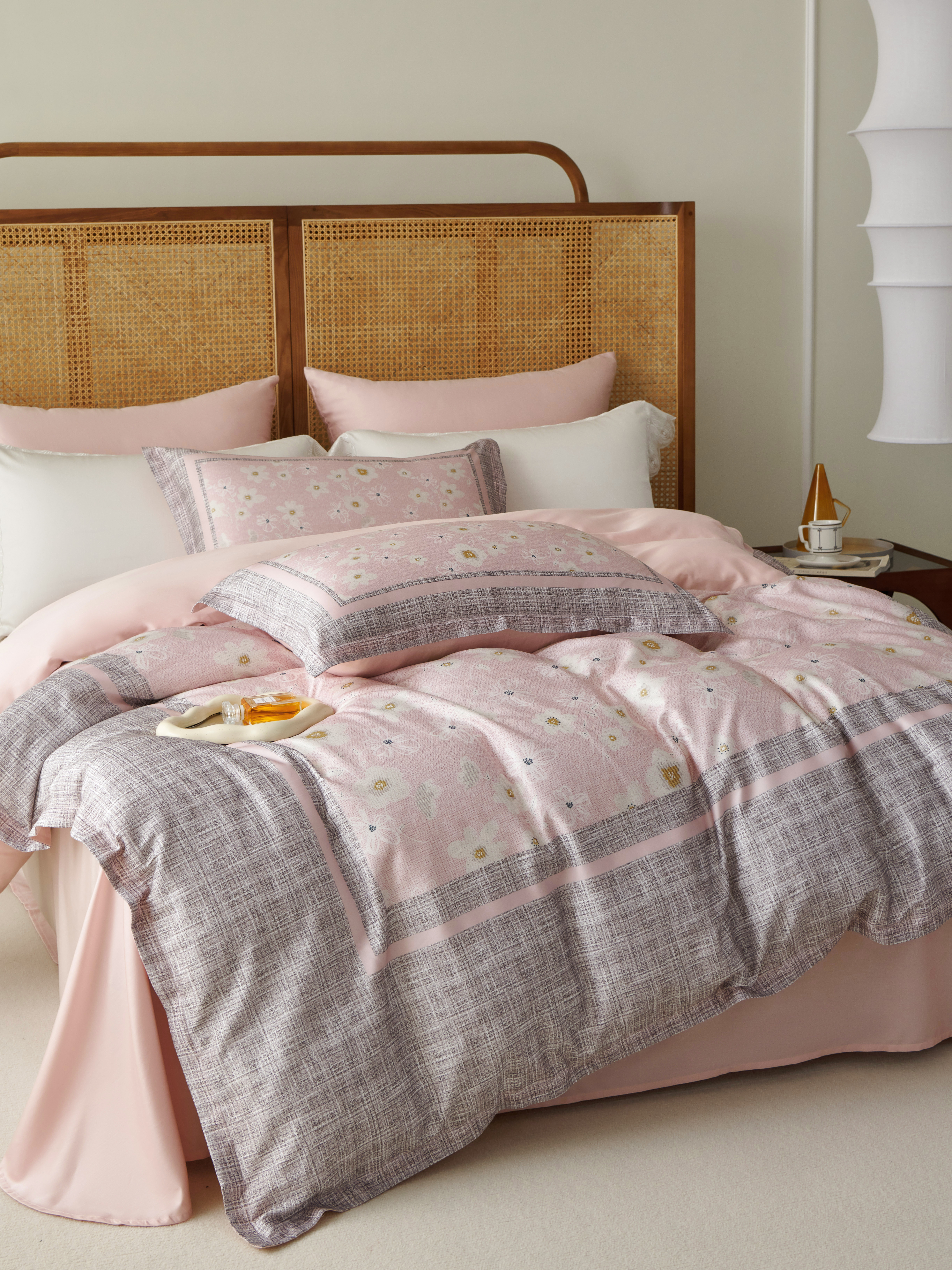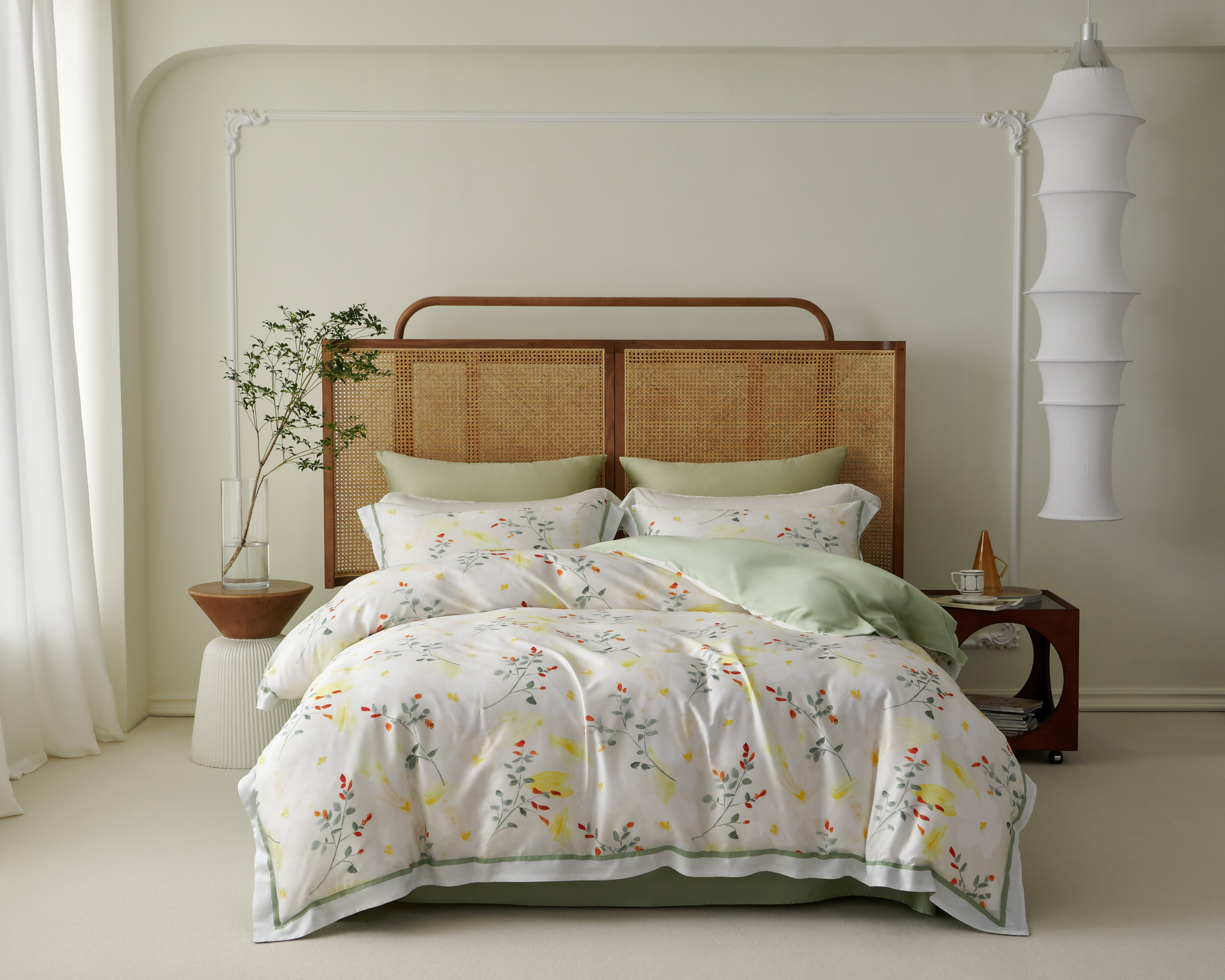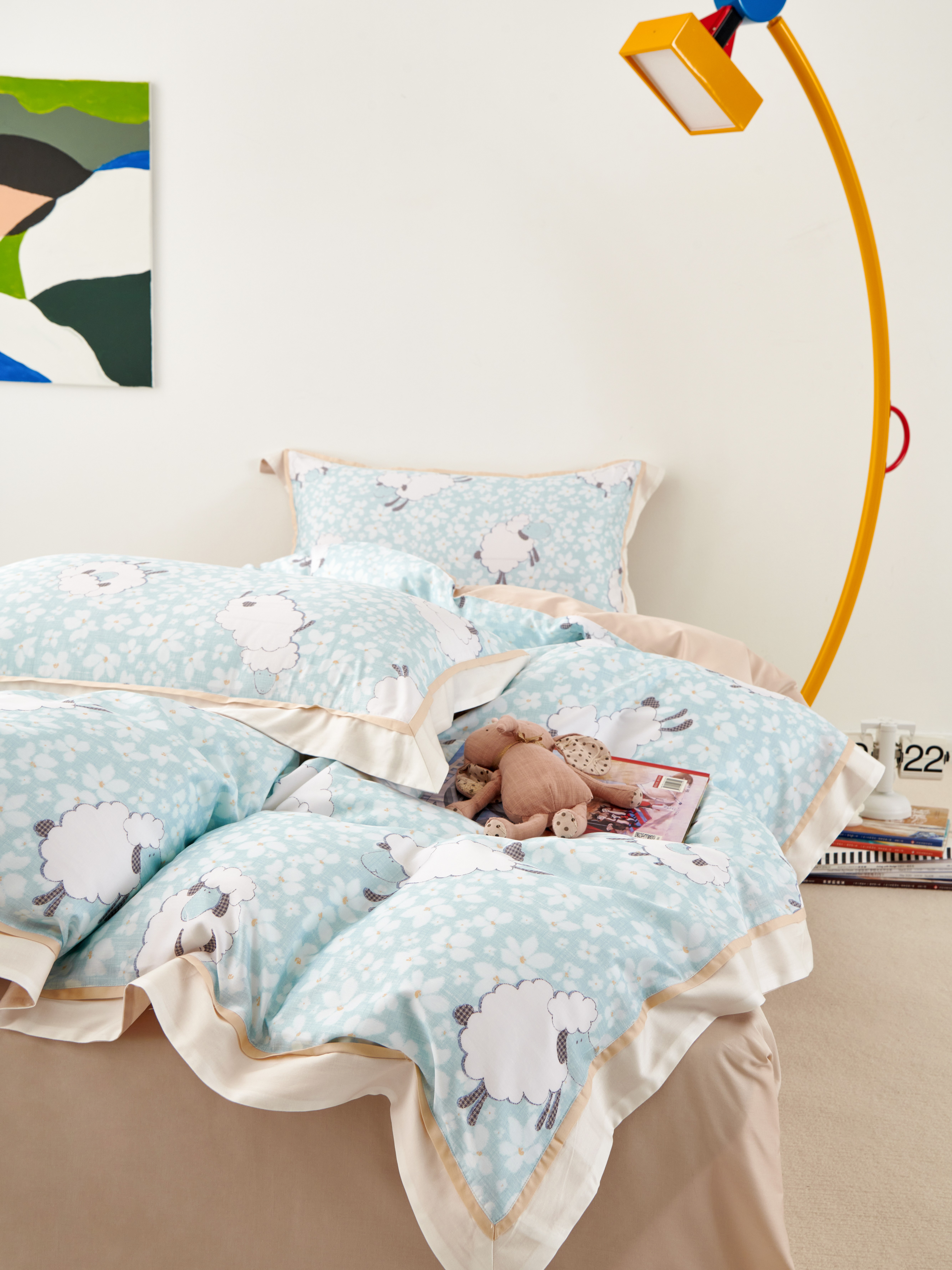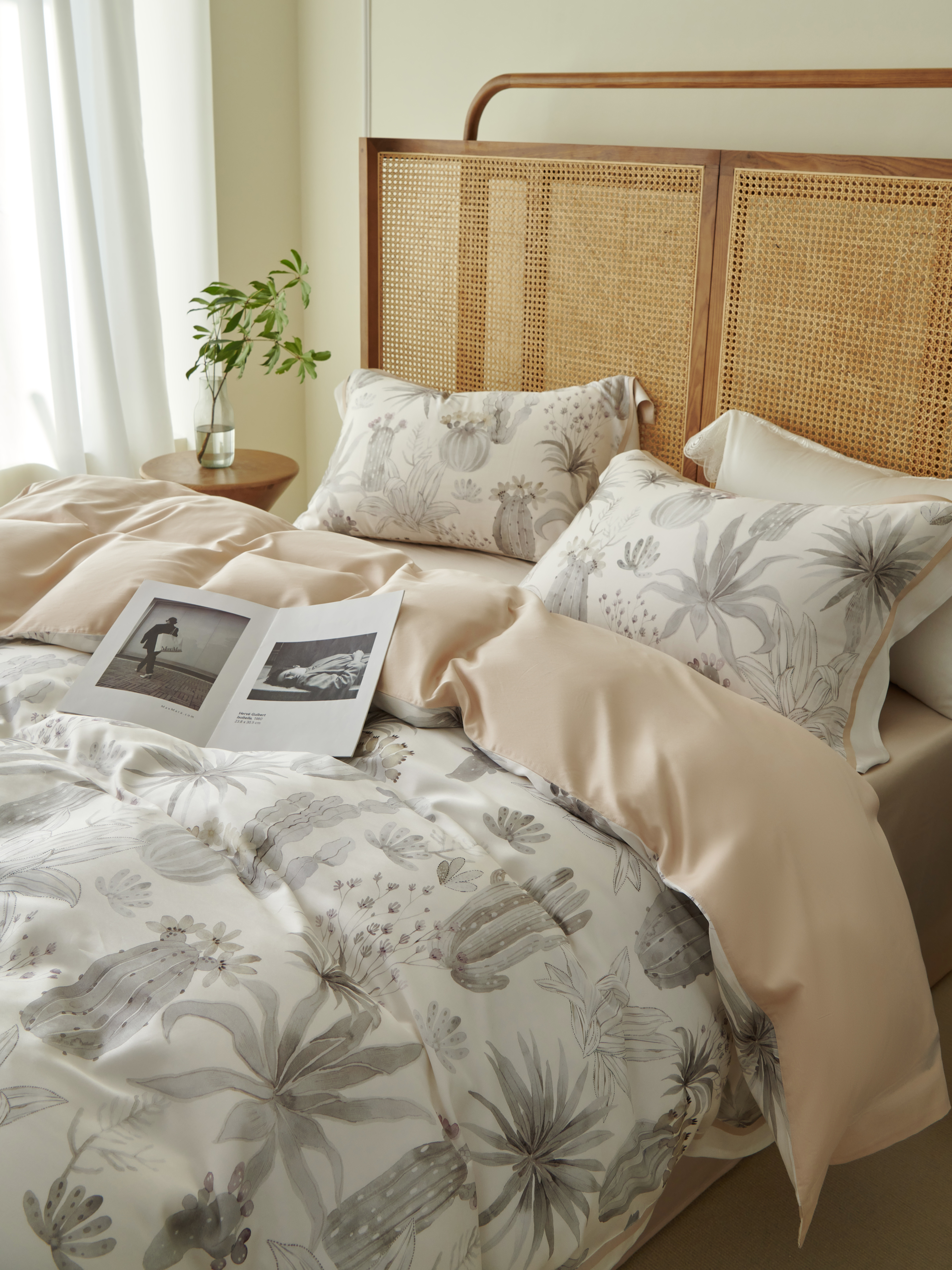 【下架】自然醒天丝棉印花四件套春夏凉感不冰裸睡被套床单LB