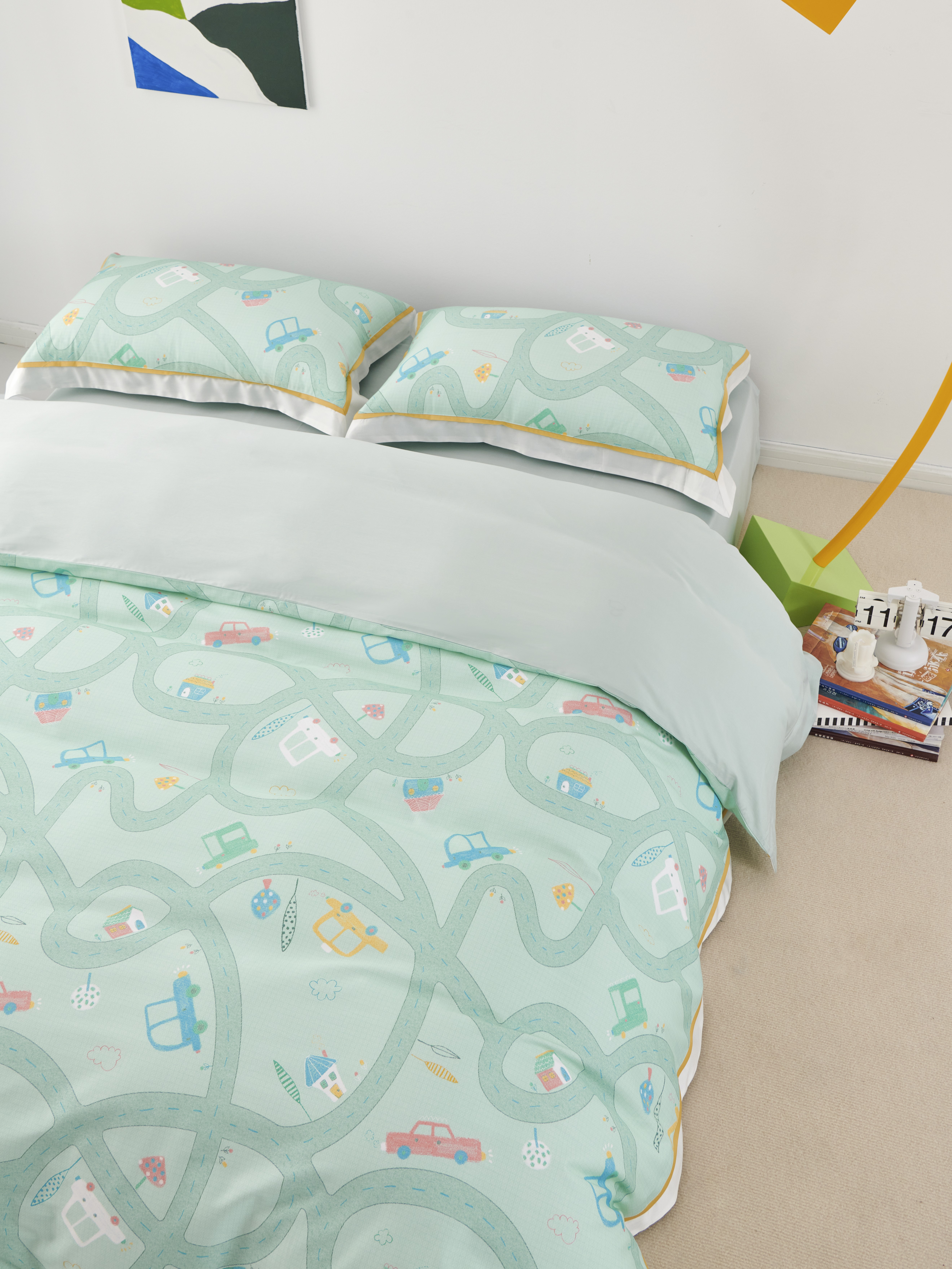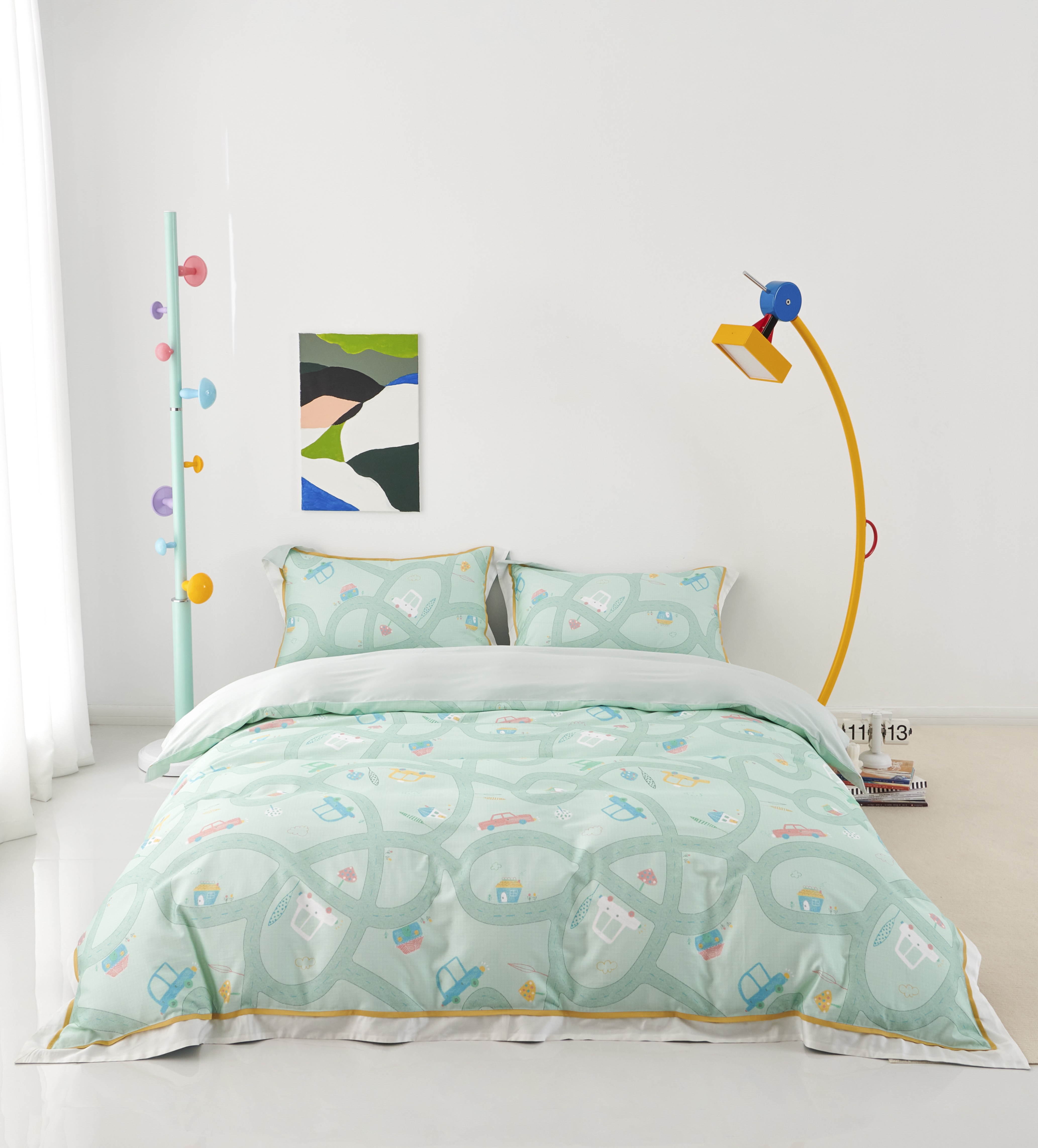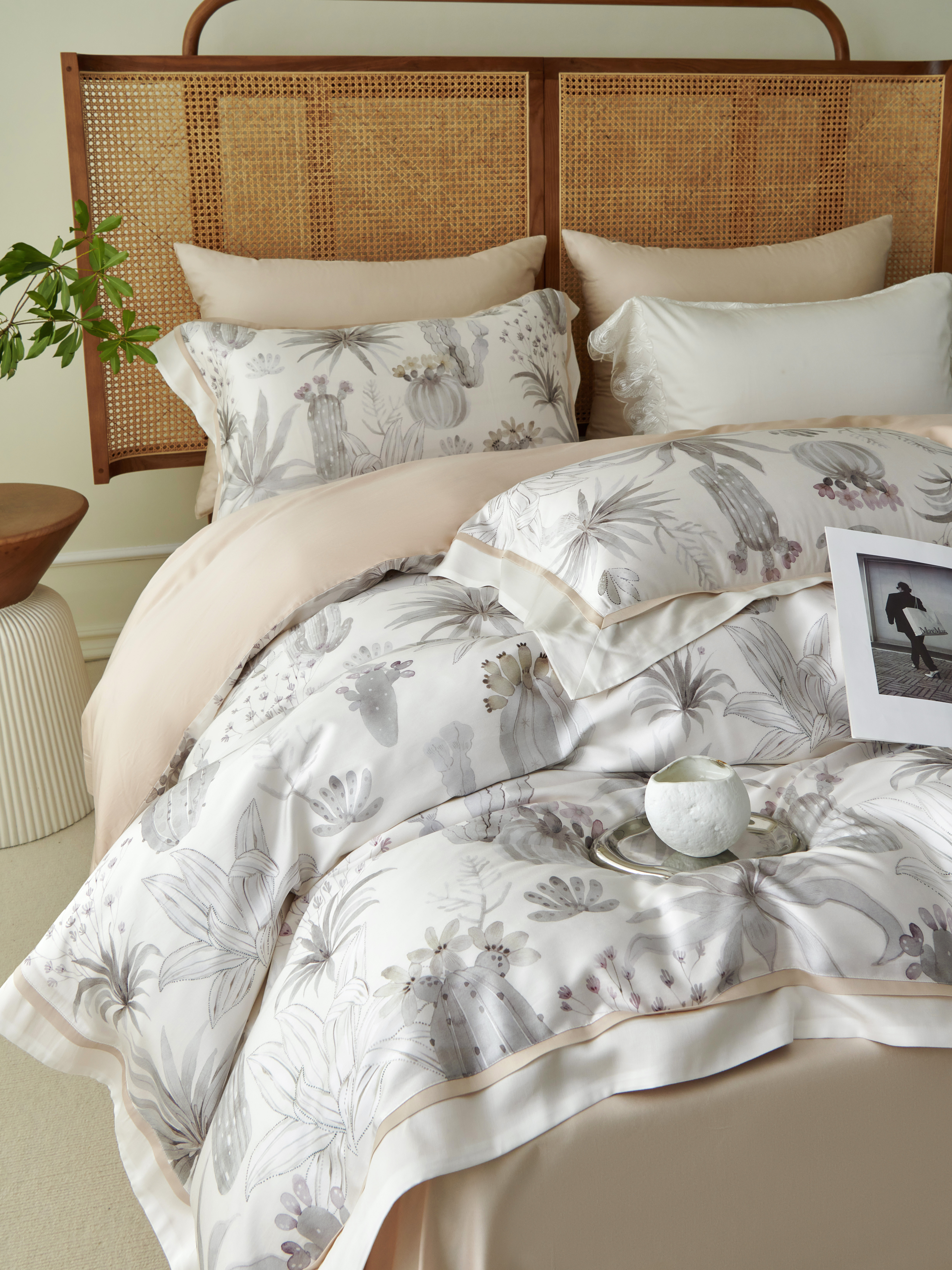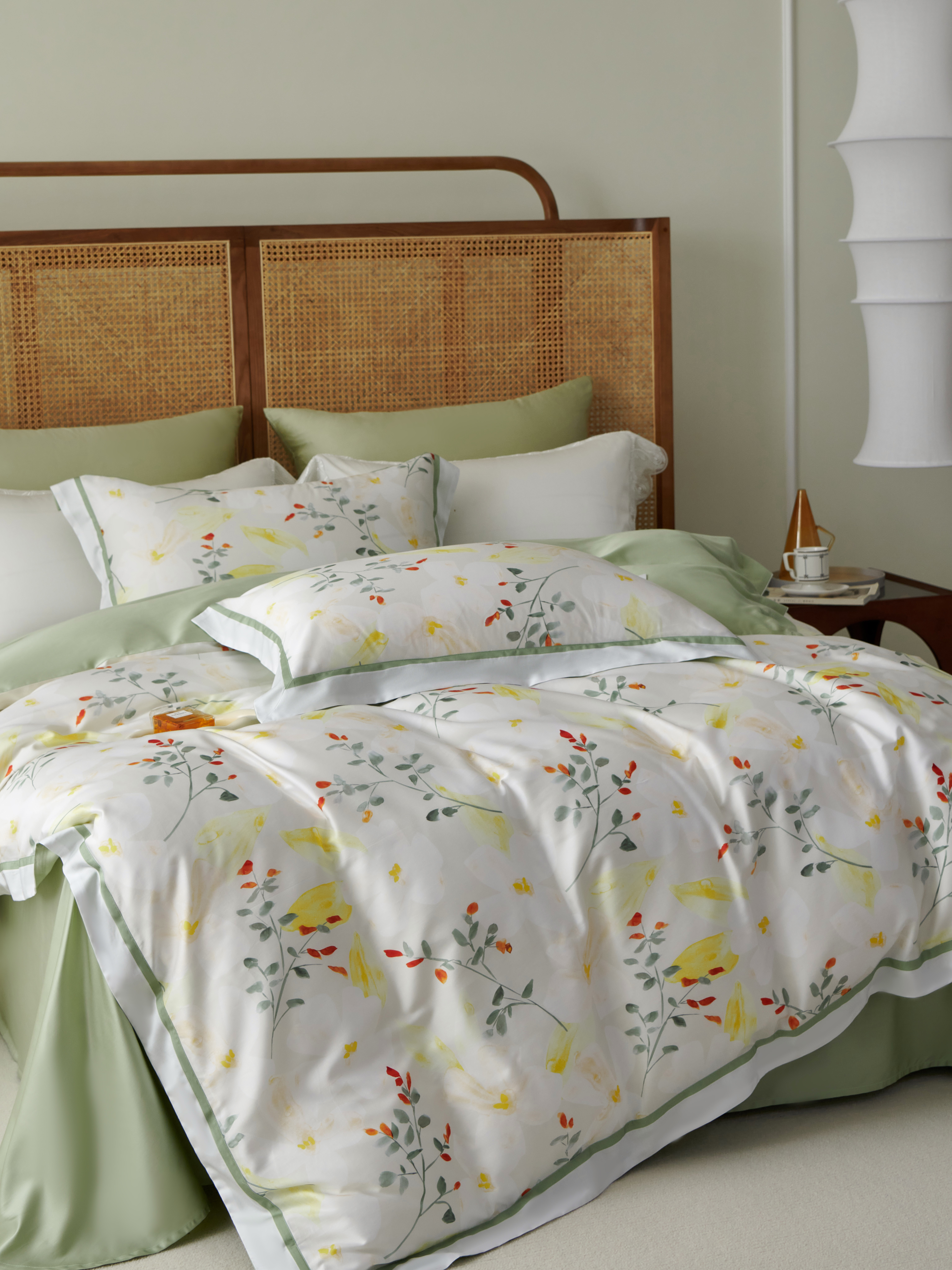 【下架】自然醒天丝棉印花四件套春夏凉感不冰裸睡被套床单LB