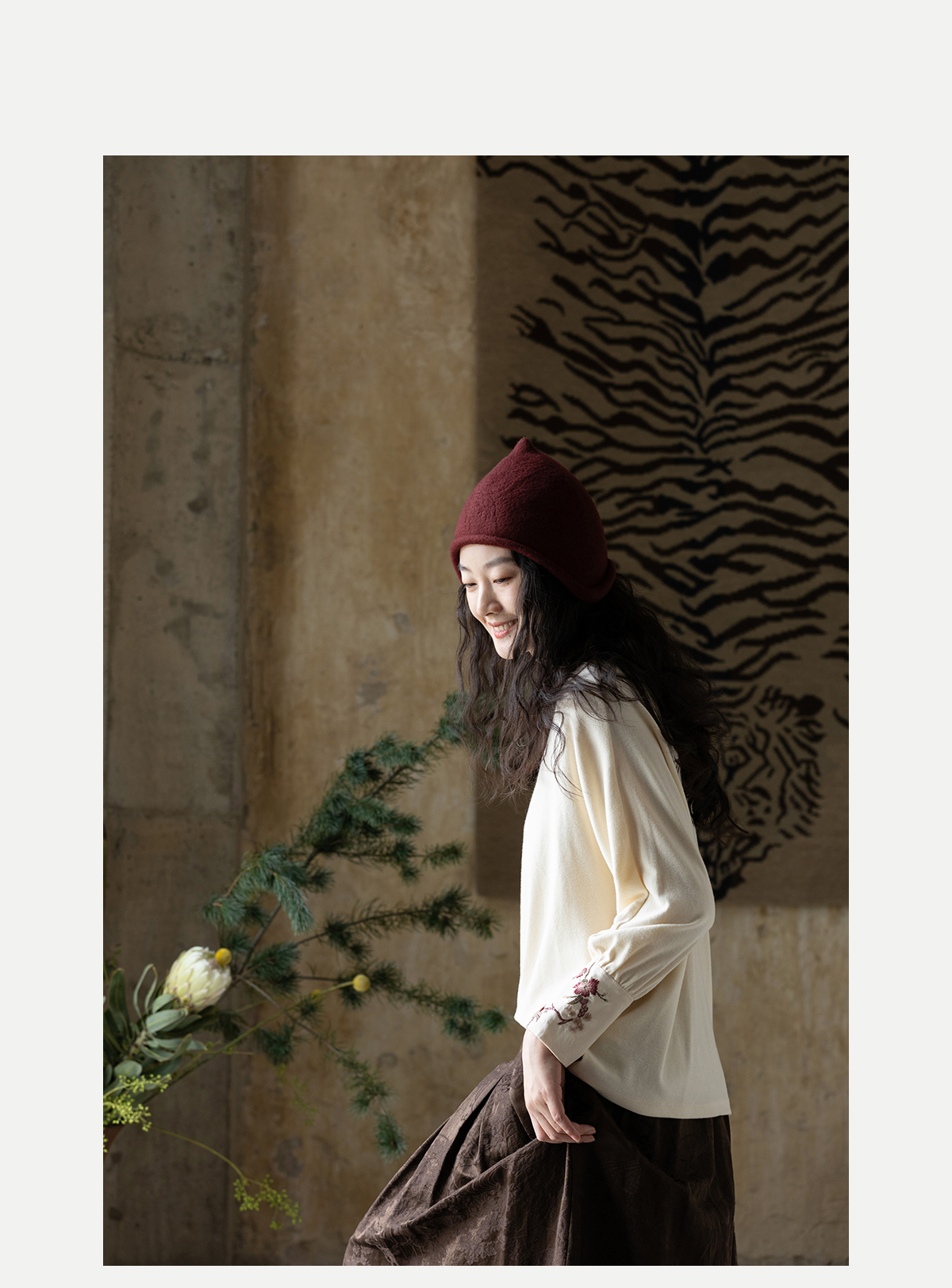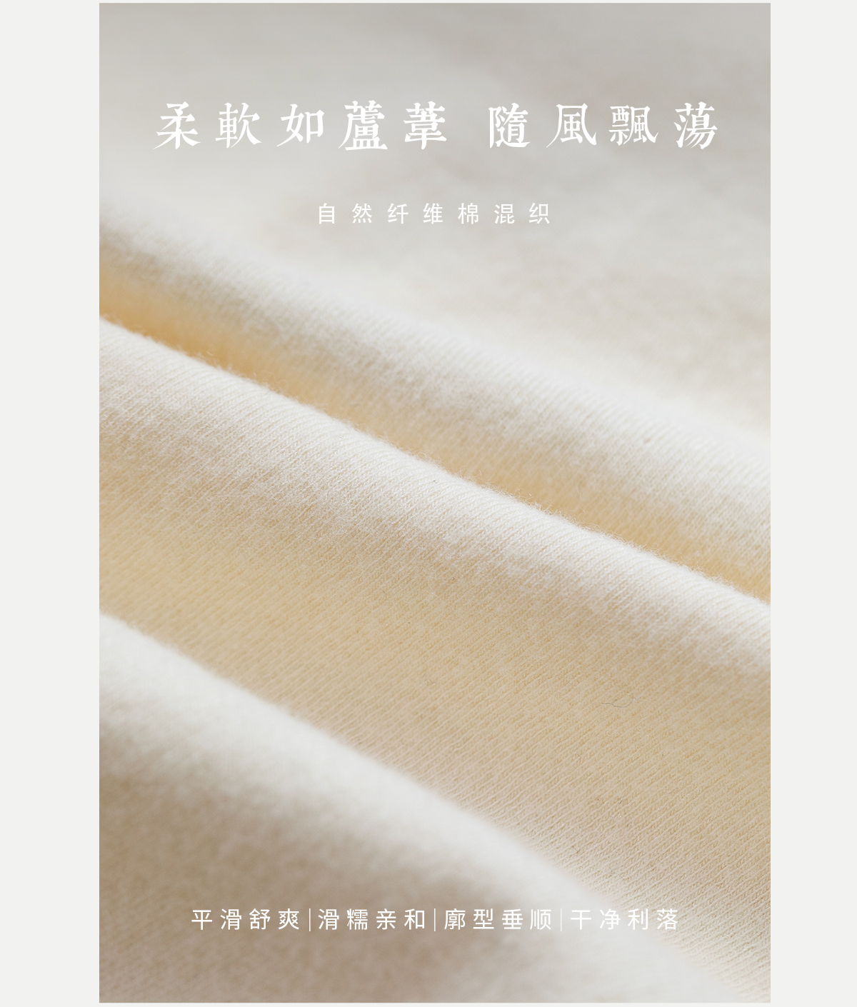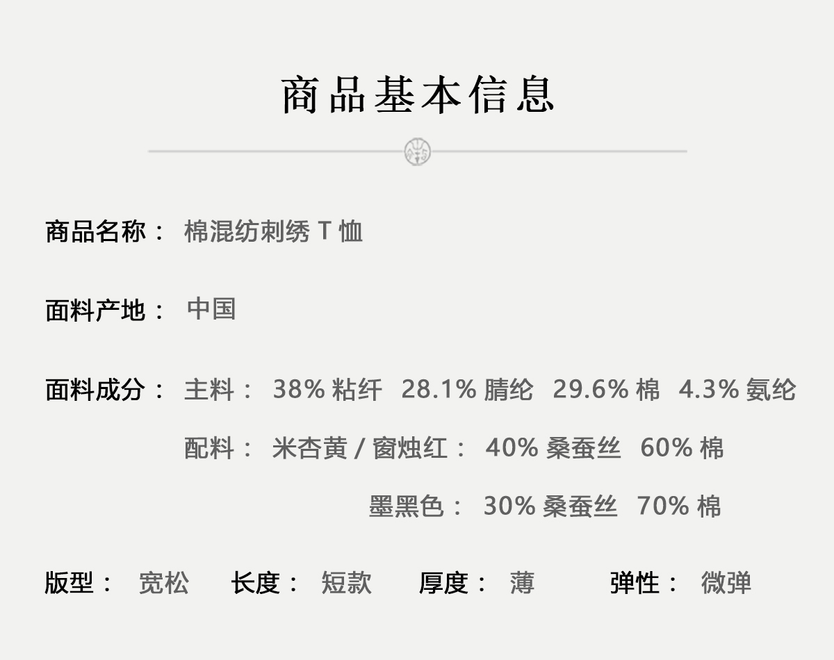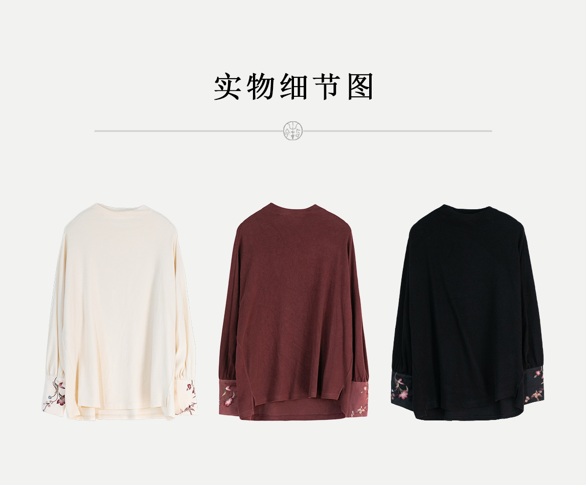 牧衣游原创棉混纺手工刺绣T恤女冬柔软亲肤简约百搭宽松上衣 檐铃