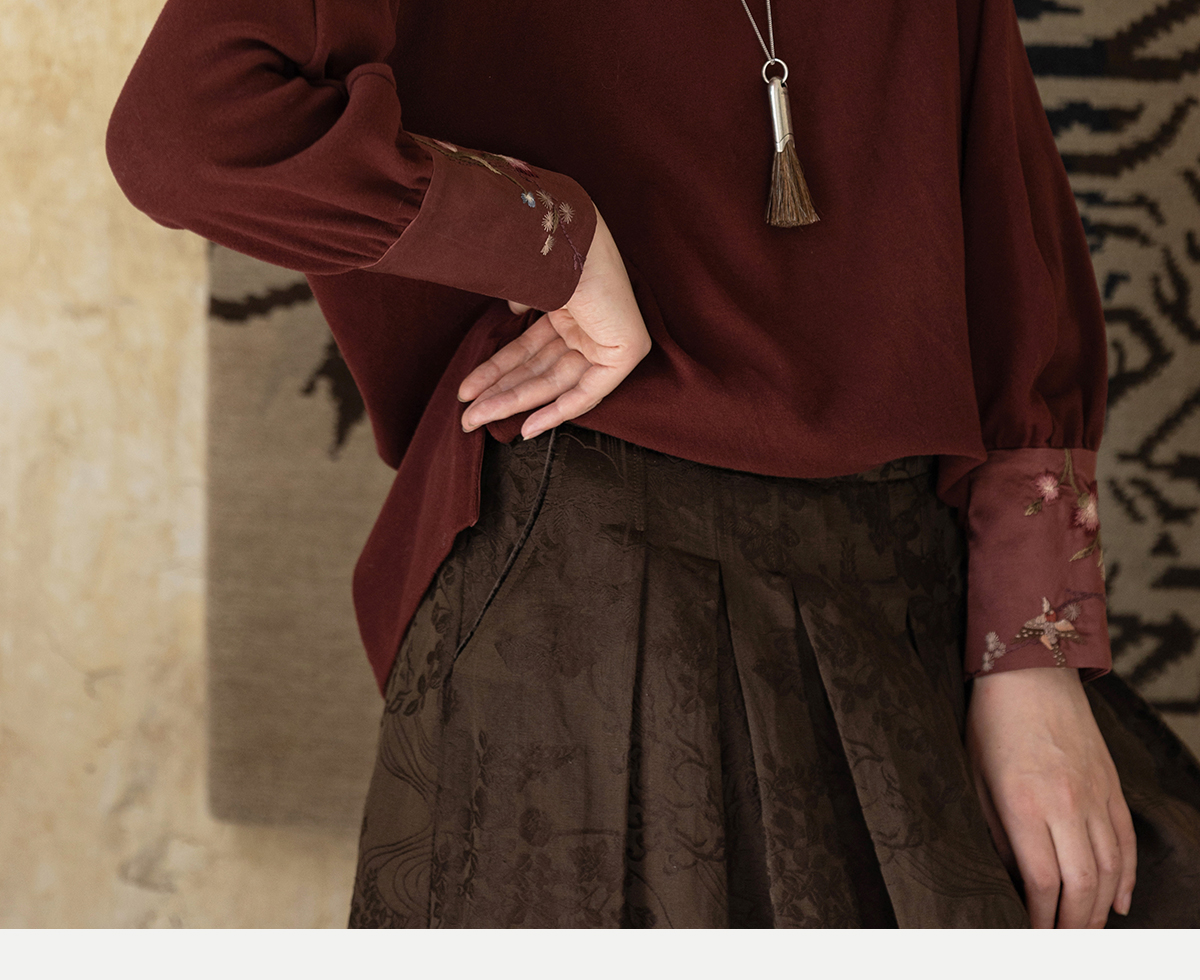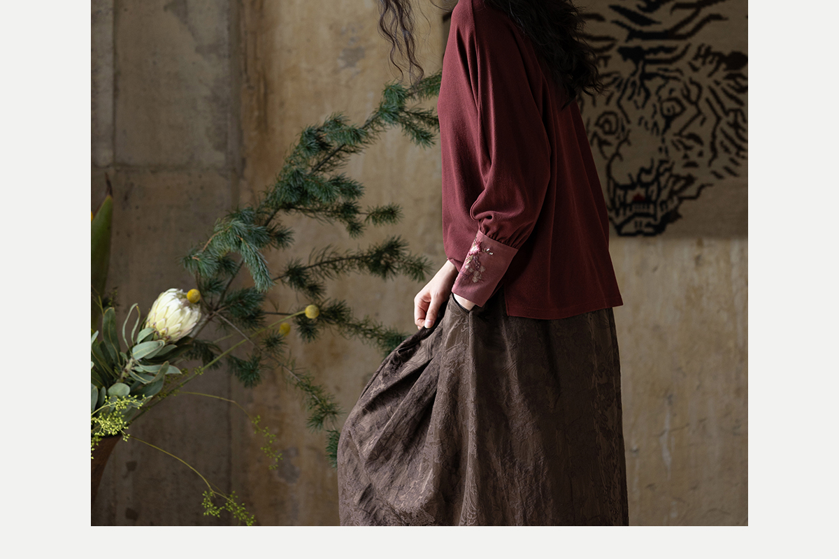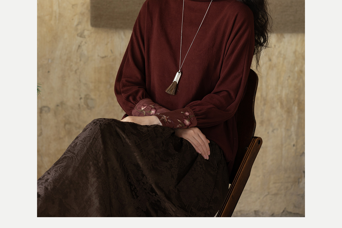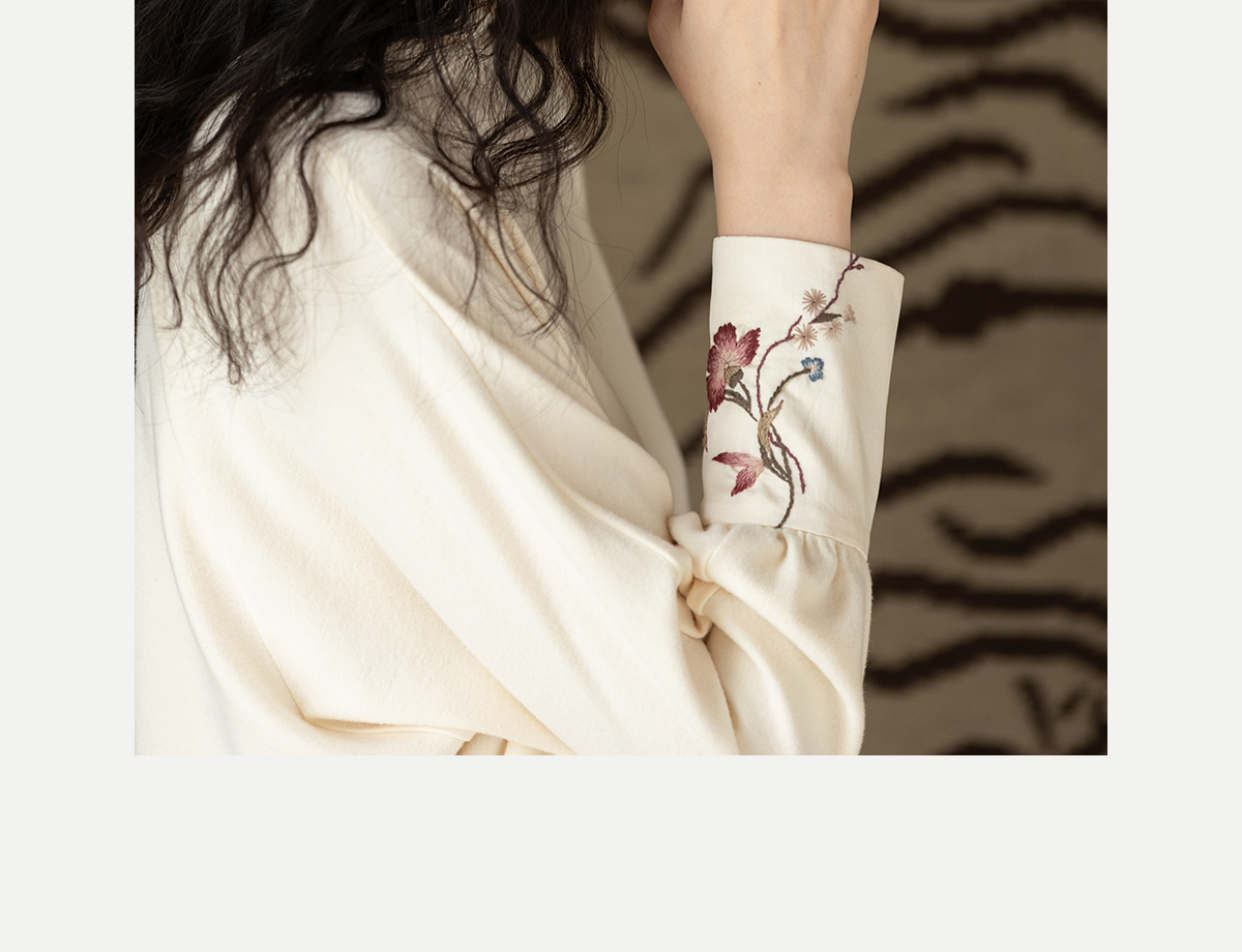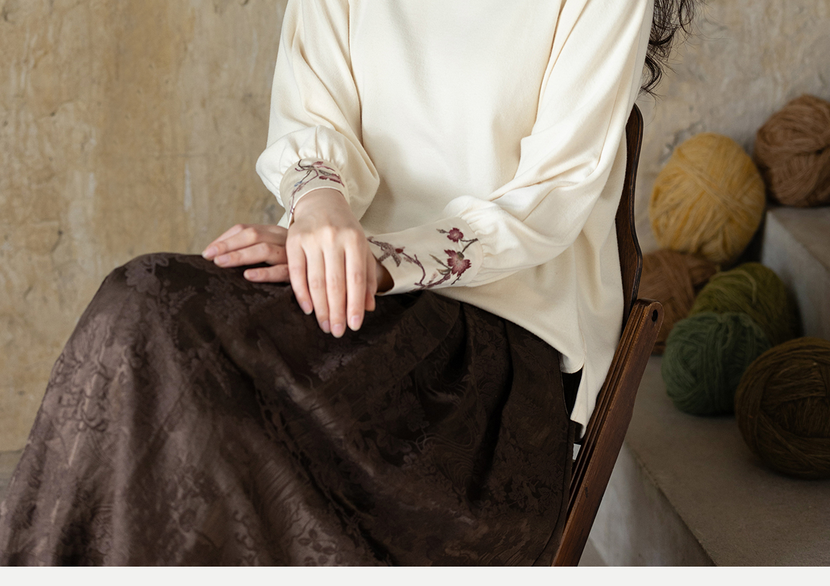 牧衣游原创棉混纺手工刺绣T恤女冬柔软亲肤简约百搭宽松上衣 檐铃