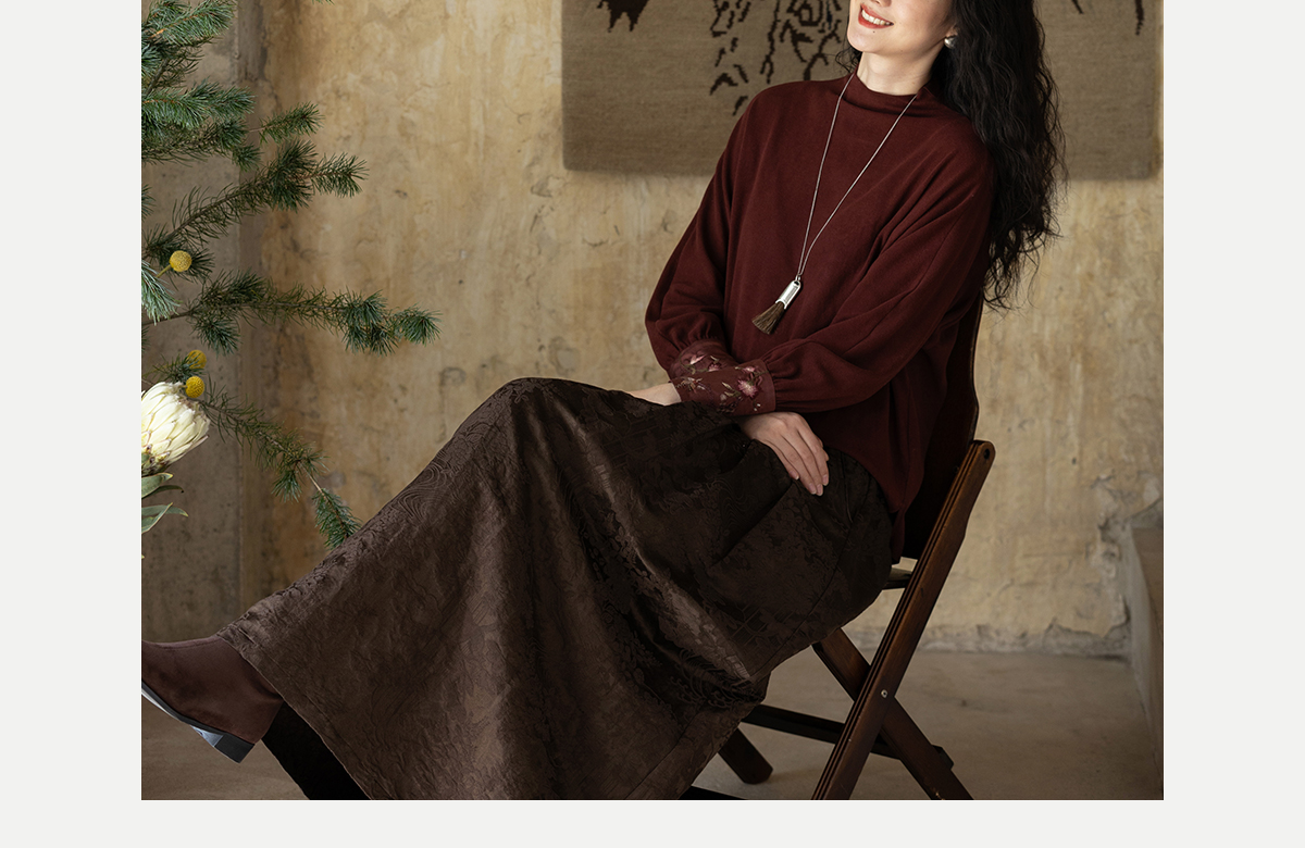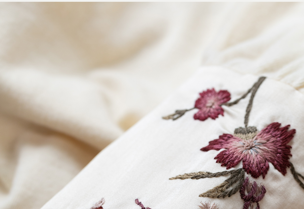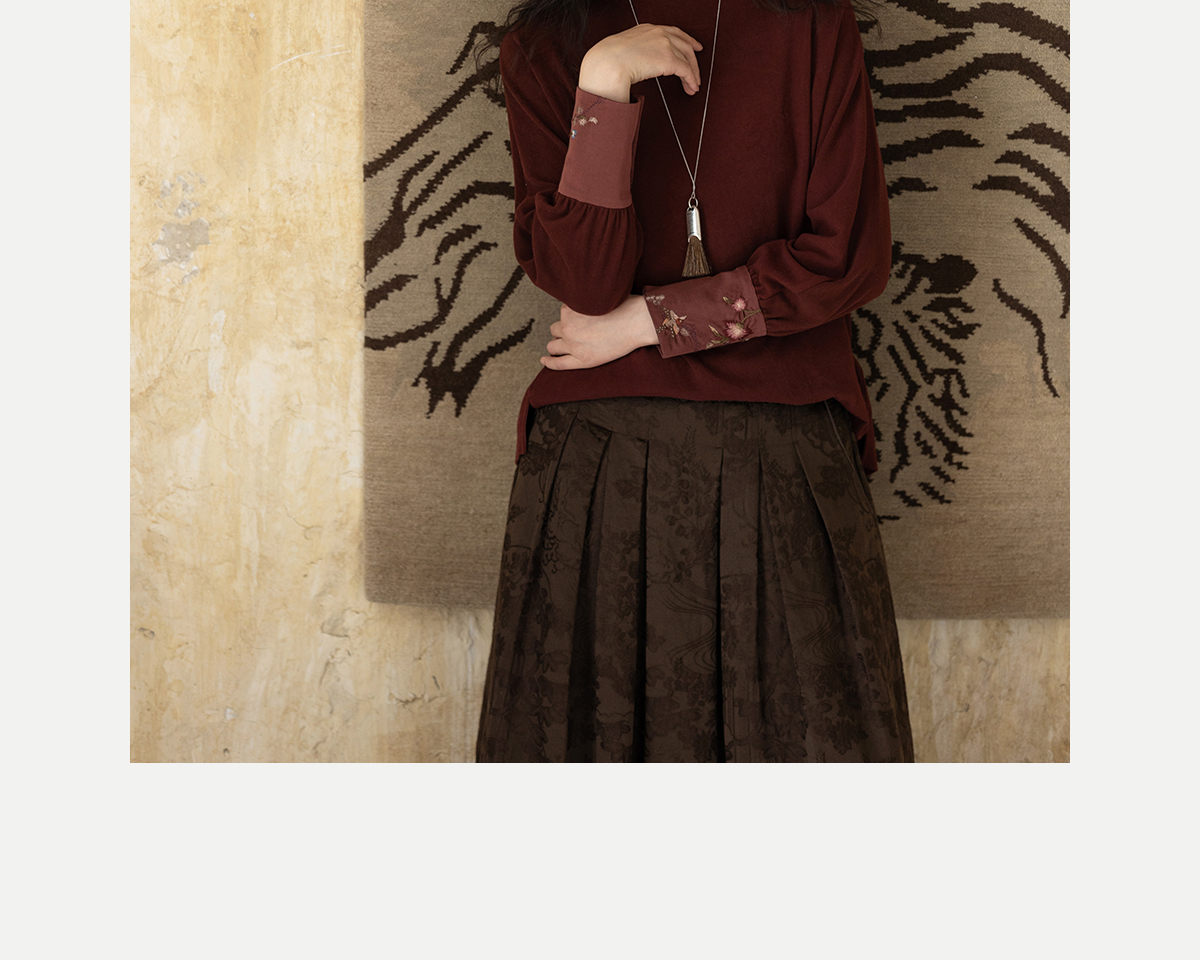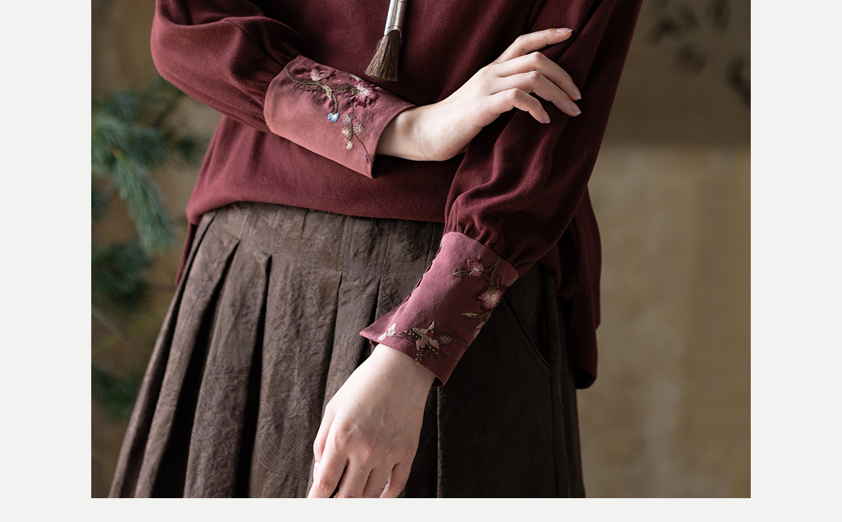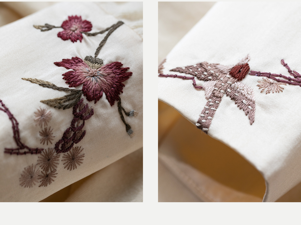 牧衣游原创棉混纺手工刺绣T恤女冬柔软亲肤简约百搭宽松上衣 檐铃