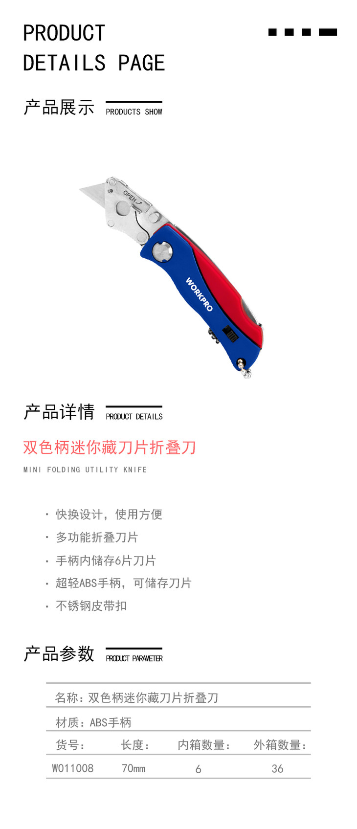 W011008万克宝双色柄迷你藏刀片折叠刀