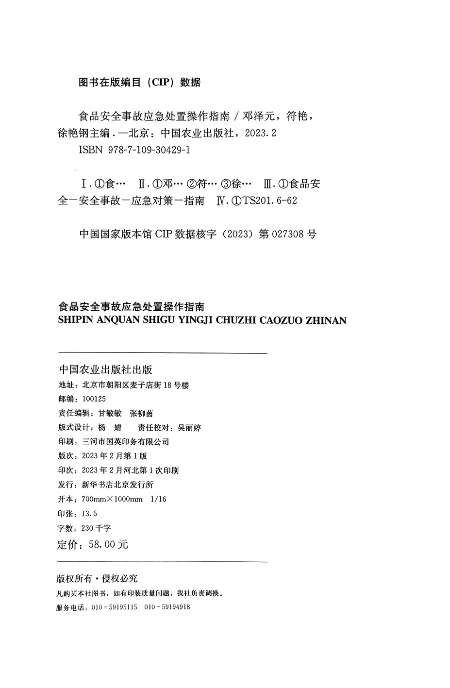 食品安全事故应急处置操作指南 邓泽元,符艳,徐艳钢 应对策略 30429
