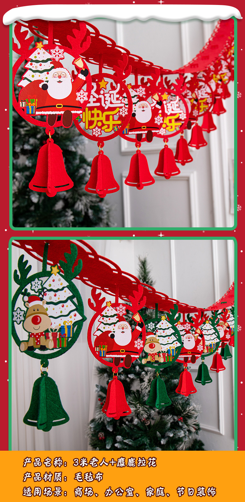「五款可选!3米拉花」圣诞节家居装饰品拉旗挂饰幼儿园教室布置场景氛围挂件拉花彩带儿童节