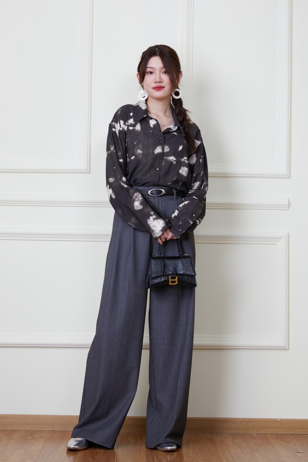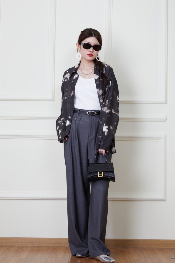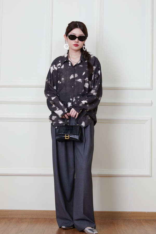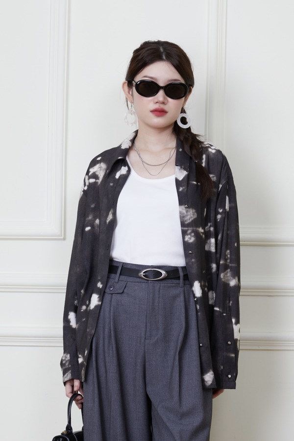 ANSUABEL 休闲随性黑色印花衬衫 20162