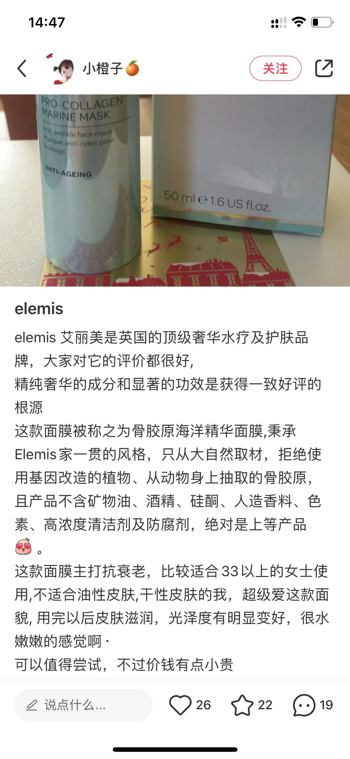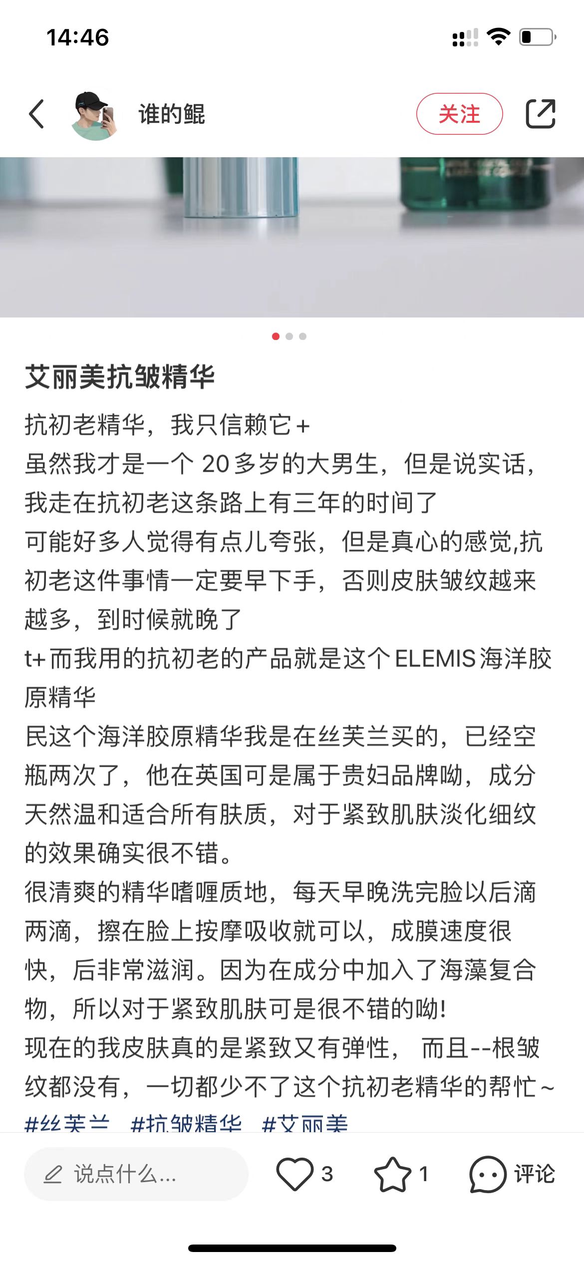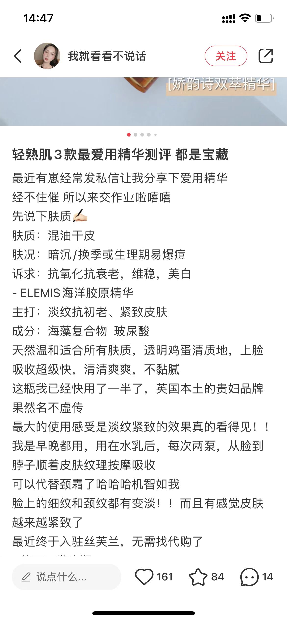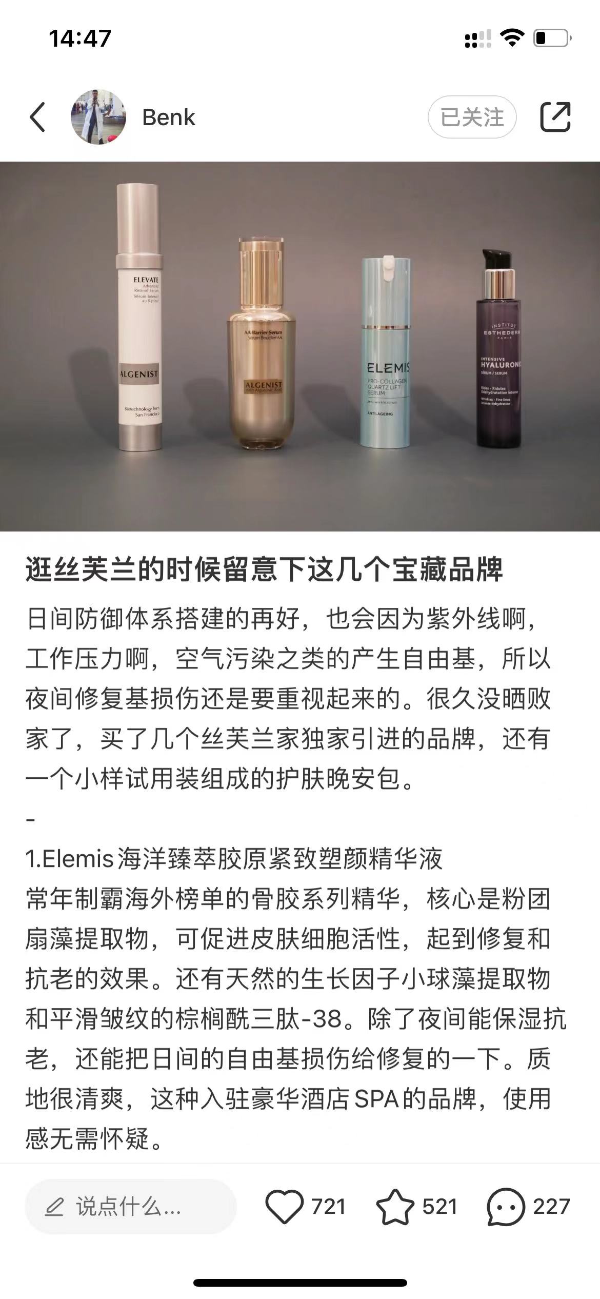 这个品牌的王牌系列就是臻萃胶原系列,它是有专利技术的,是ELEMIS独有,