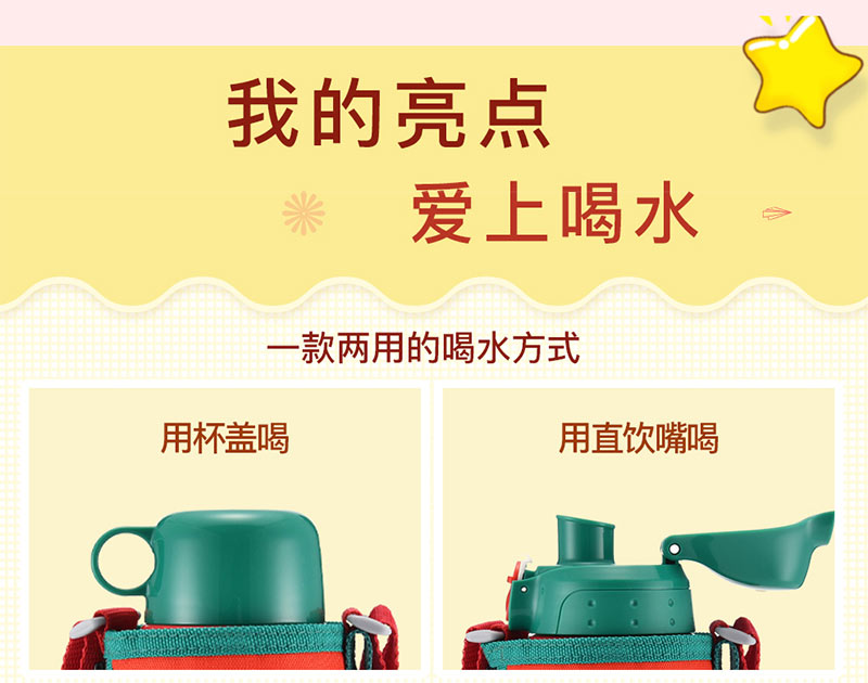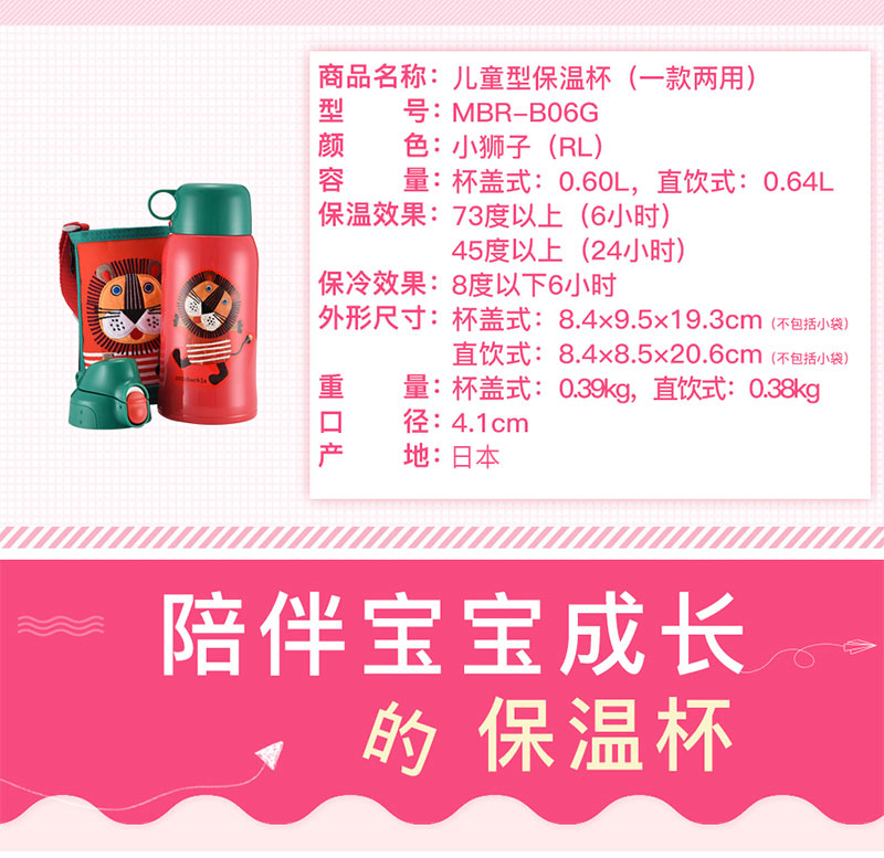 日本Tiger虎牌儿童真空不锈钢两用保温保冷儿童水壶保温杯600ml