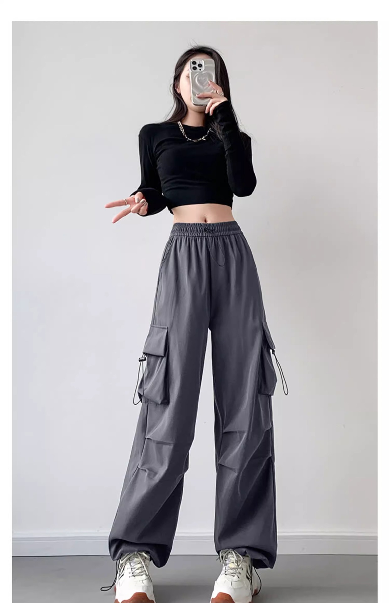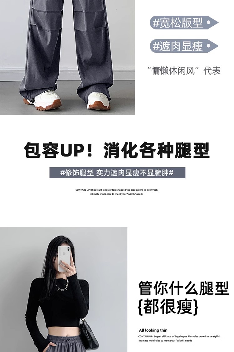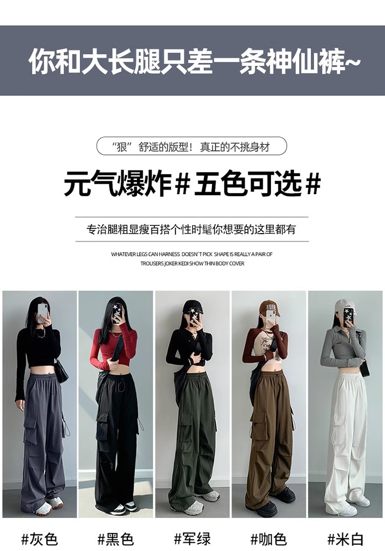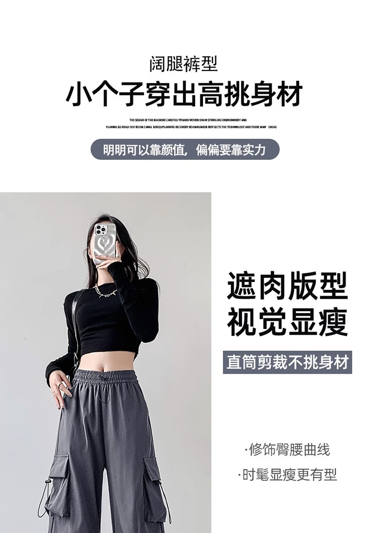 【秋季新品 潮流必备】显瘦高腰,修饰腿型;优质工装面料,追求品质;多色可选,满足不同需求。秋季新款,小个子必备,运动休闲,自由穿搭!