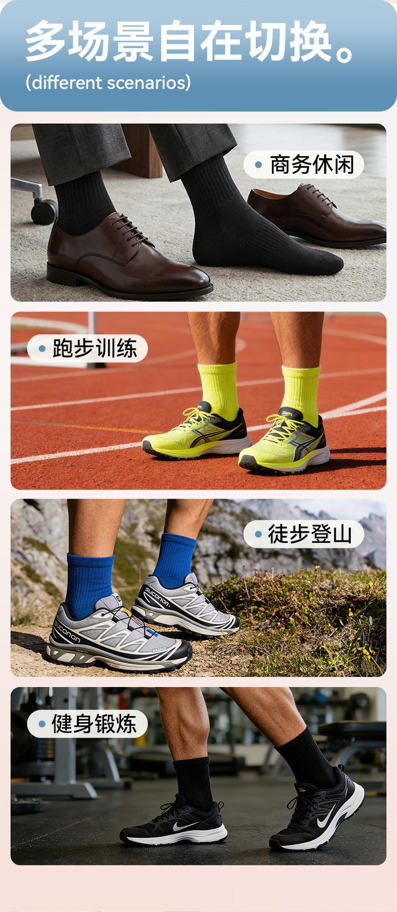 641肌动谜影系列中筒运动袜跑步马拉松透气徒步商务休闲男女款毛巾底
