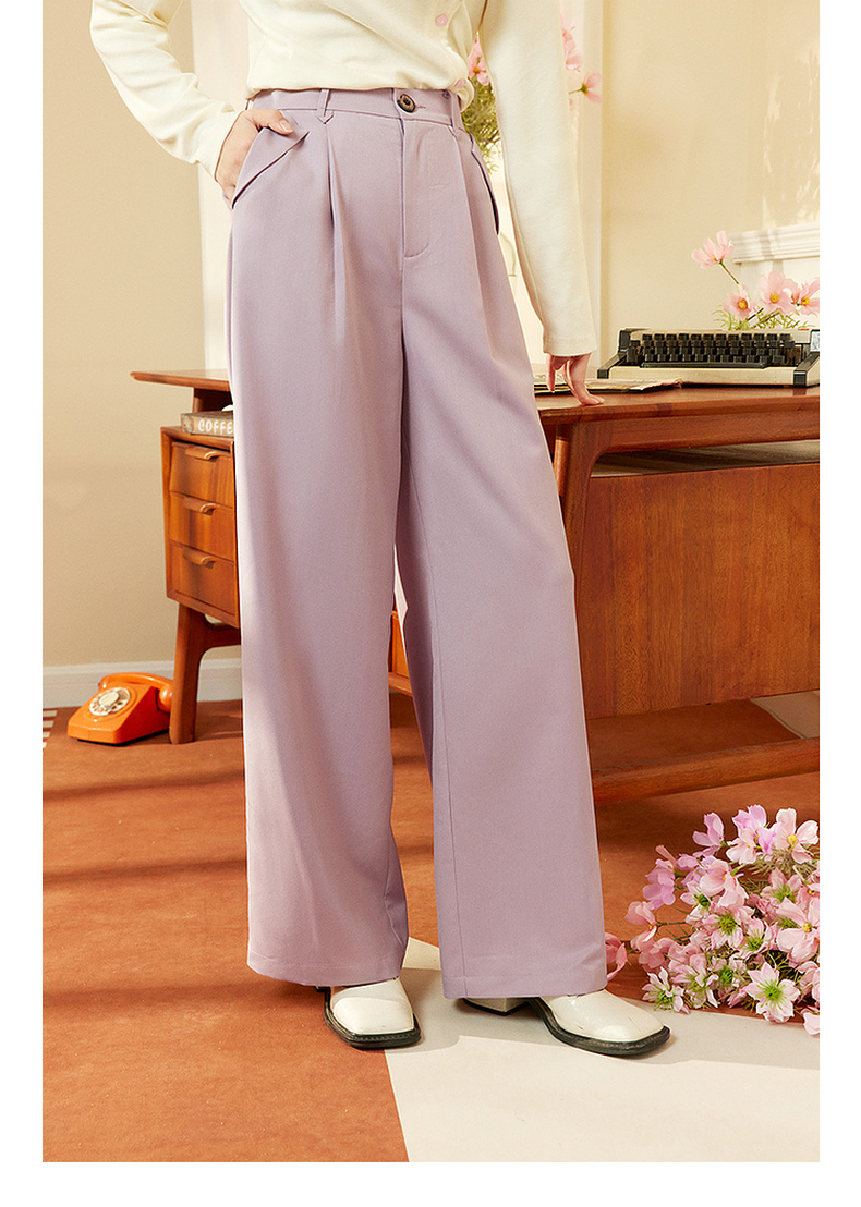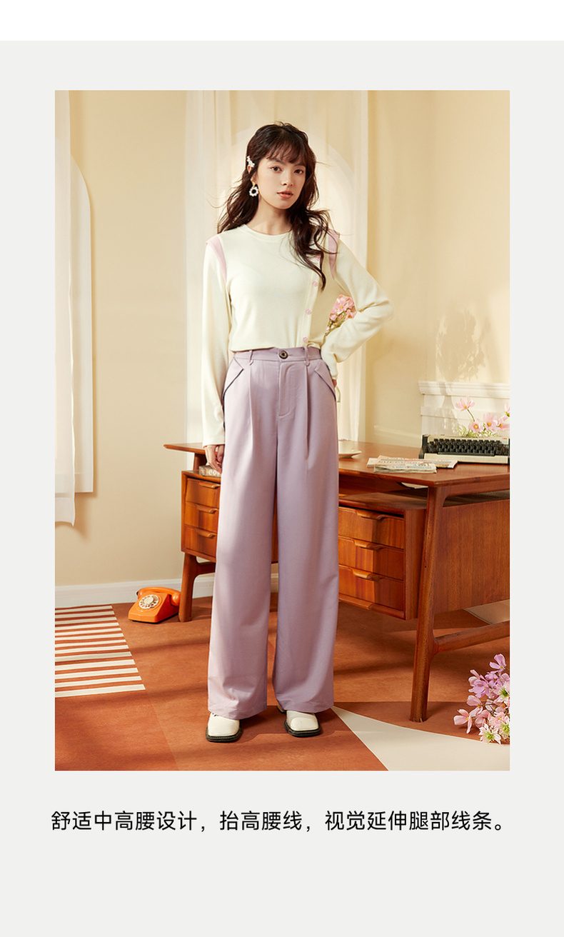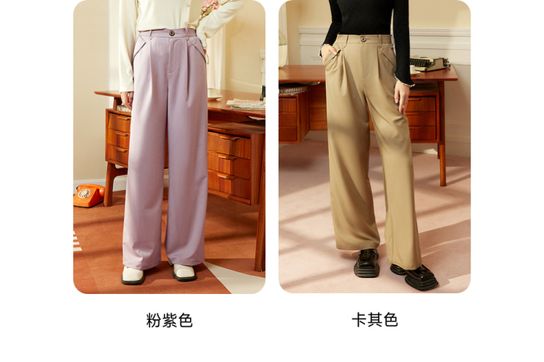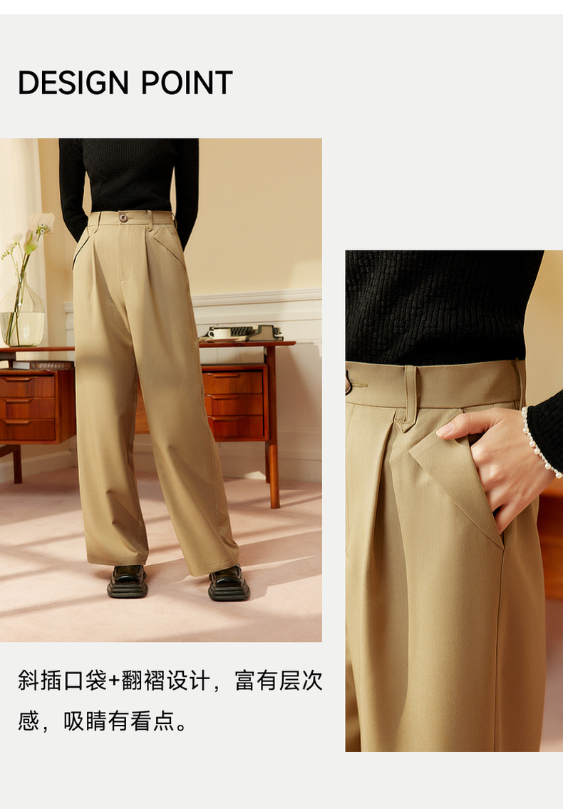 两三事 简约宽松高腰阔腿休闲裤女