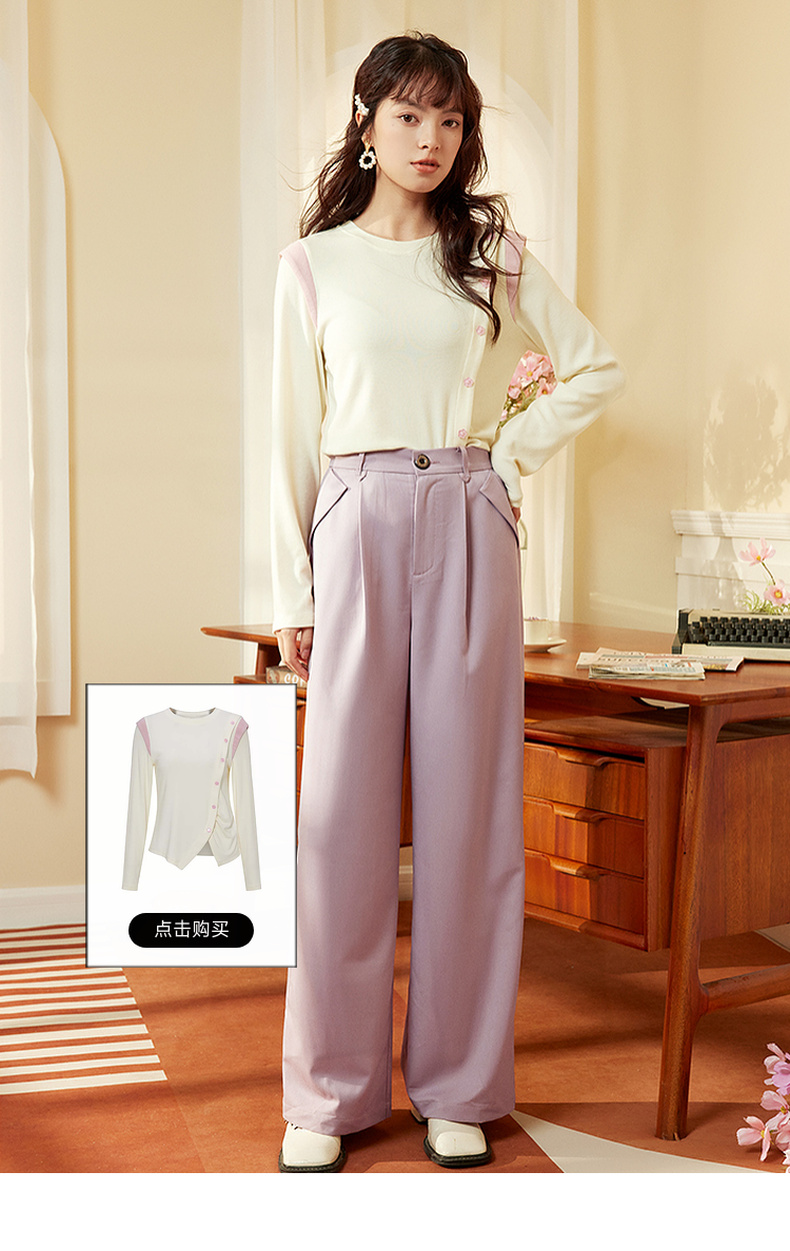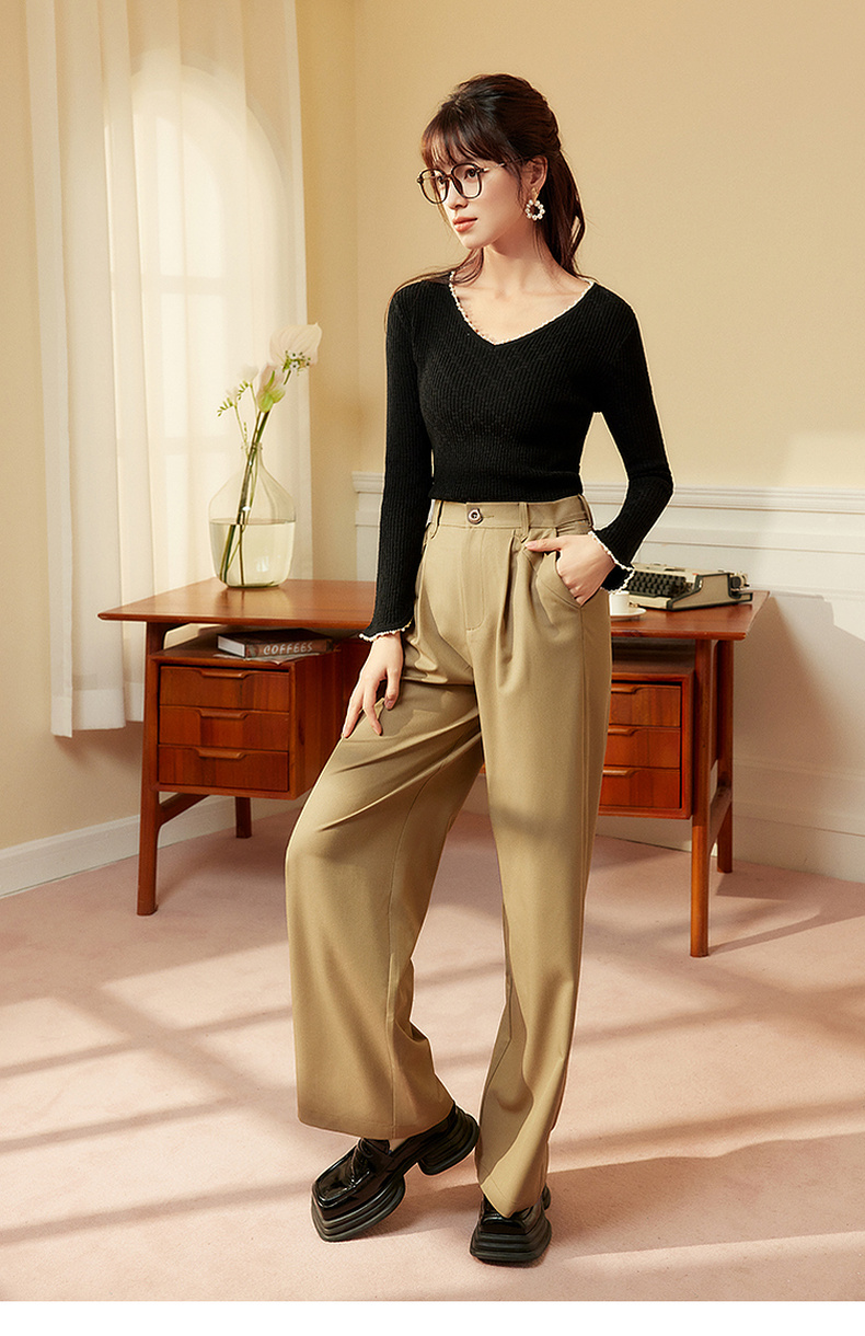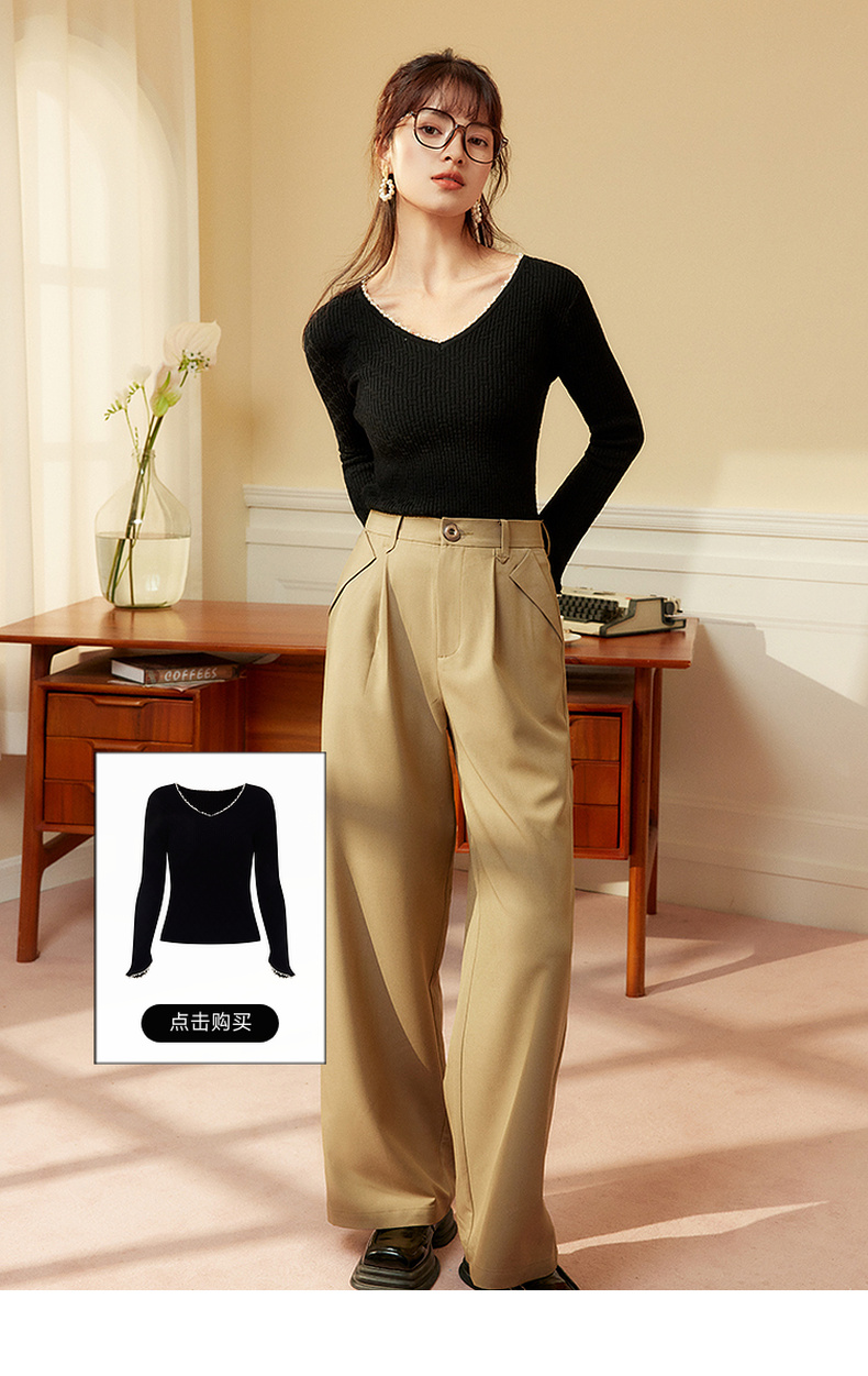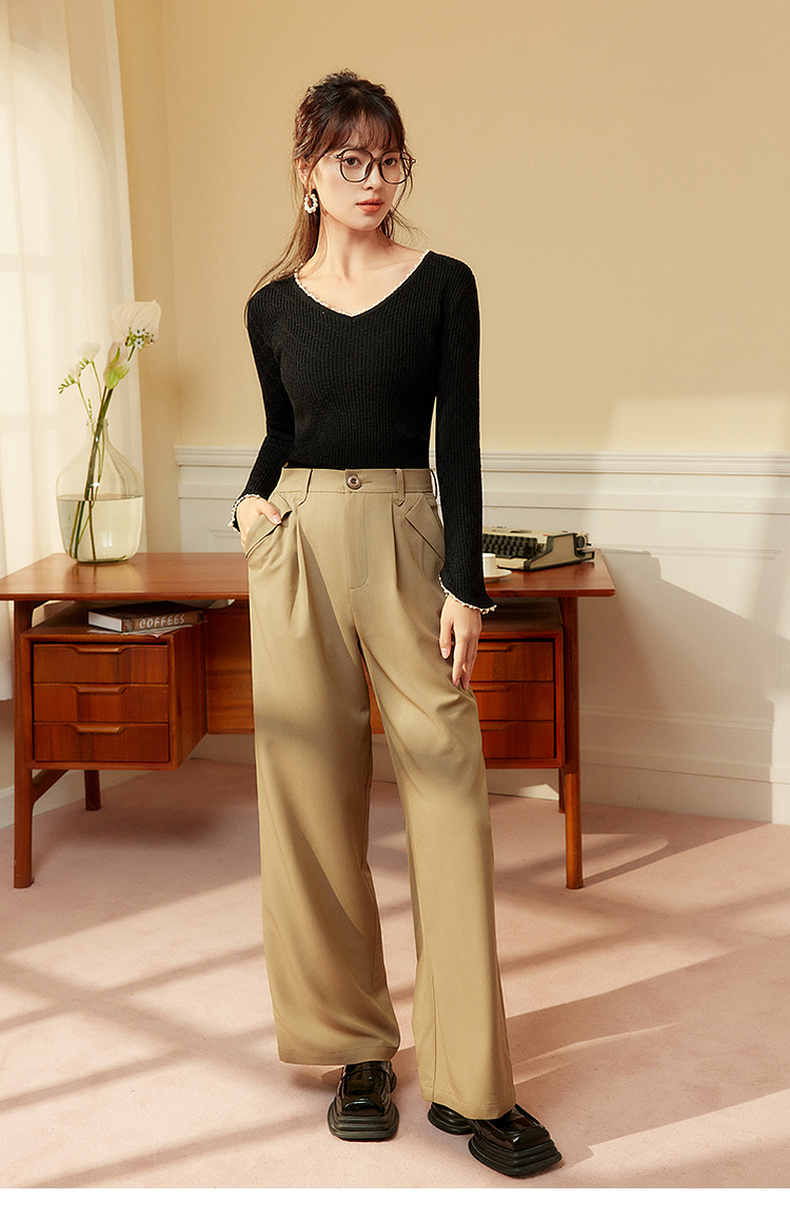 两三事 简约宽松高腰阔腿休闲裤女