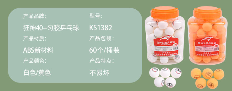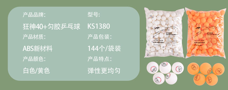 狂神乒乓球KS1380(黄/白)袋