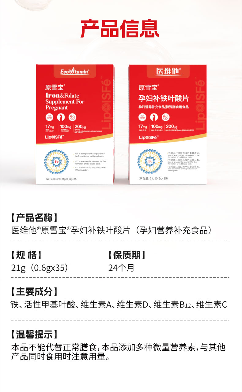 医维他原雪宝孕妇补铁叶酸片(孕妇营养补充食品)